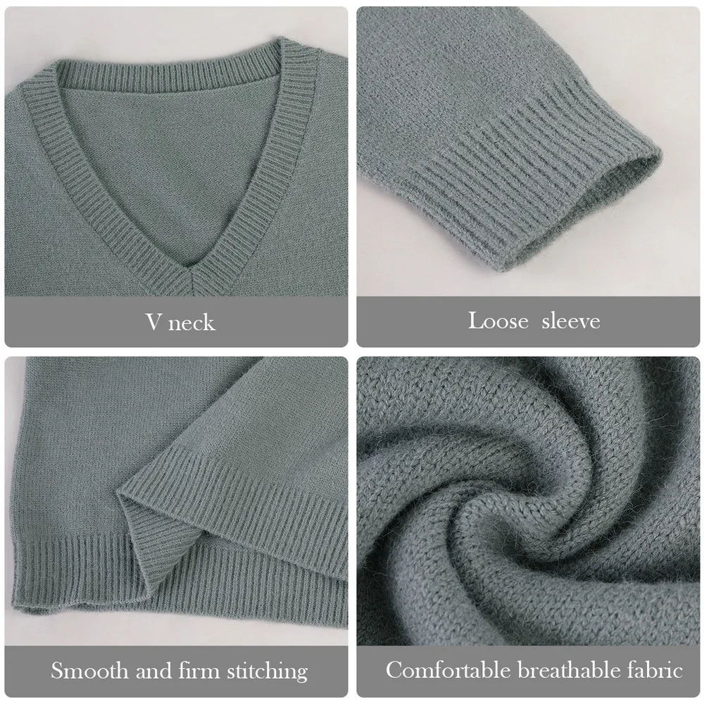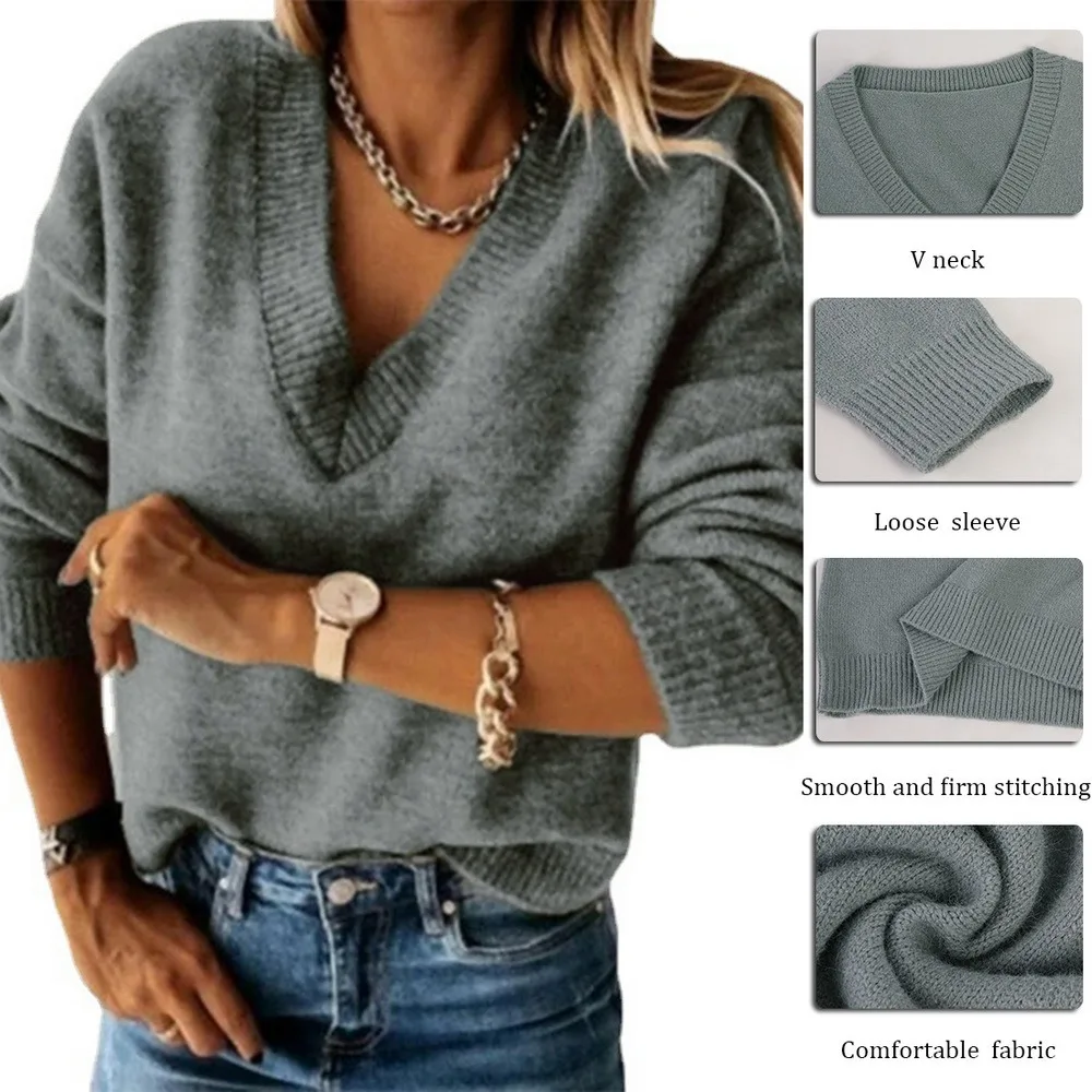 Свитер Женский вязаный, с V-образным вырезом, с длинным рукавом, весна-осень, 2021