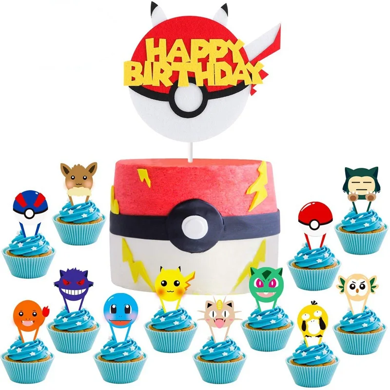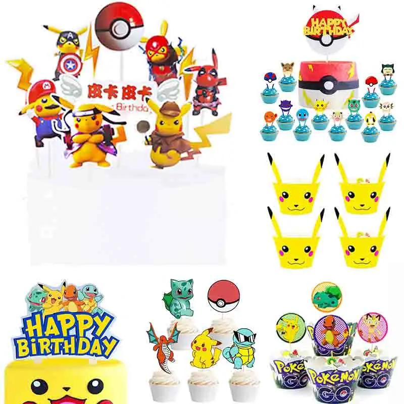 Аксессуары для украшения тортов в виде покемона на день рождения, Пикачу, Кубок для тыкать в виде шара, фигурка торта, искусственный флаг, украшение для вечеринки сделай сам