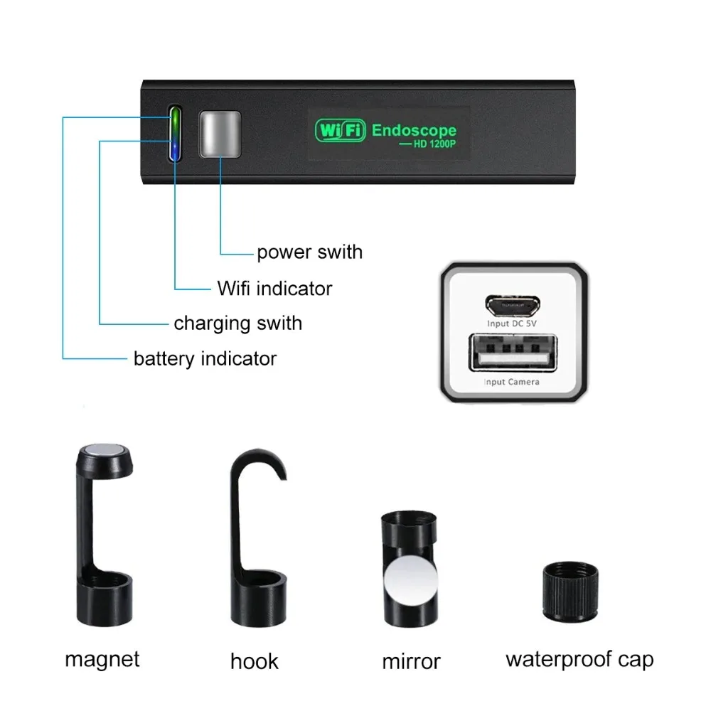 8 мм Wifi эндоскоп AndroidIOSPC бороскоп водонепроницаемый объектив...