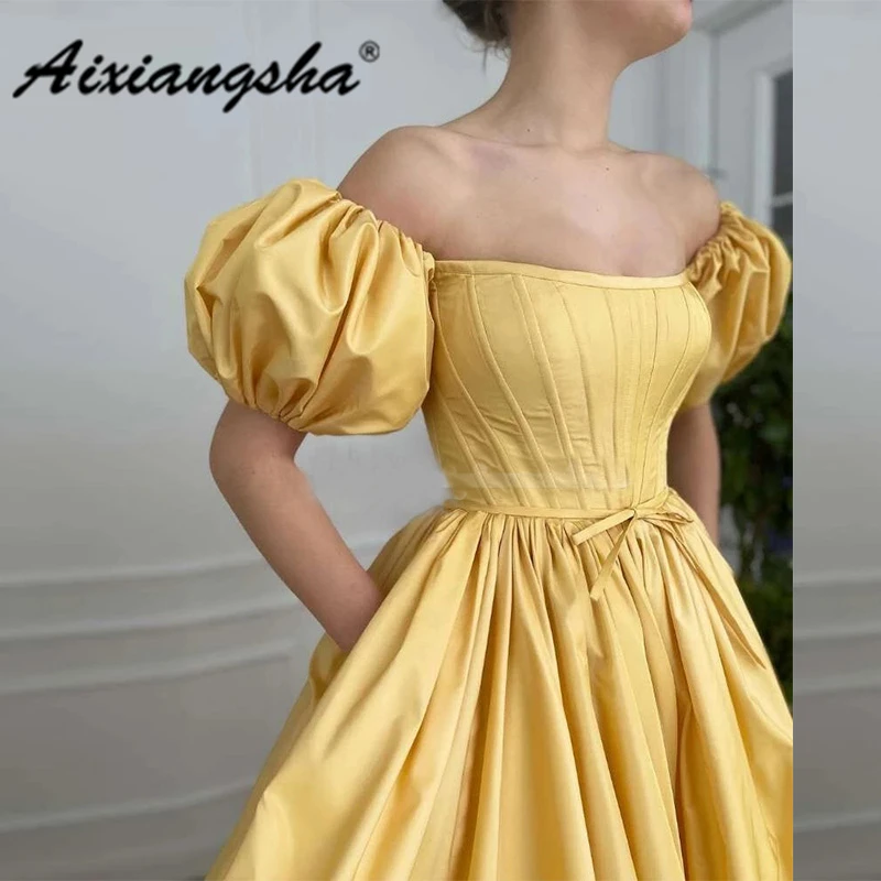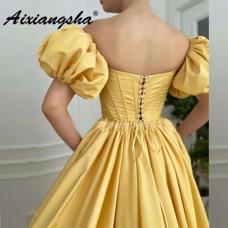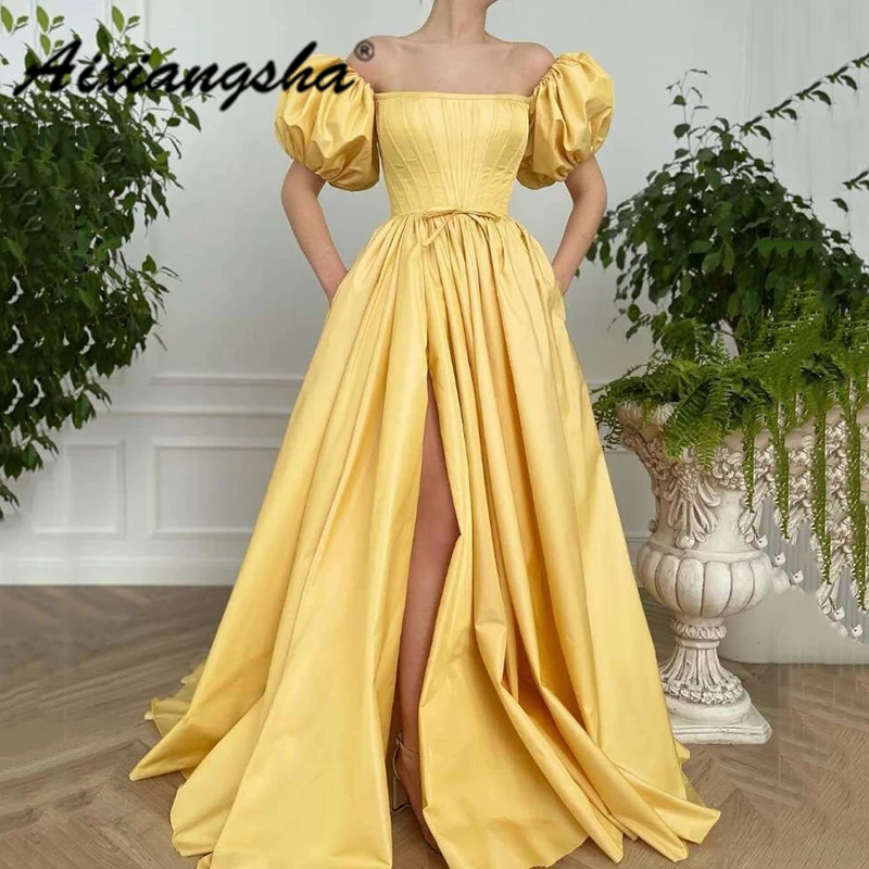 Aixiangsha, настоящие модные вечерние платья, платья принцессы во французском стиле, короткие пышные рукава, разрез, бант, пояс, знаменитости, открытые плечи