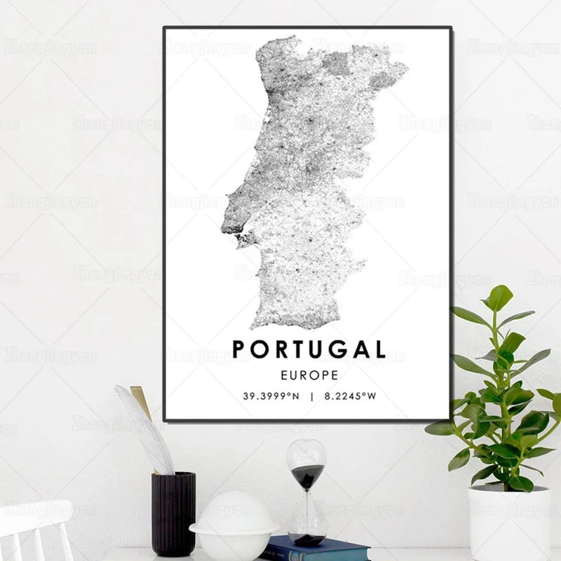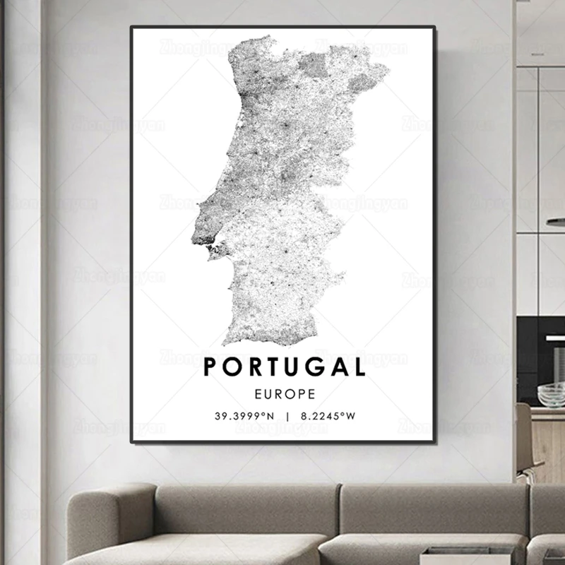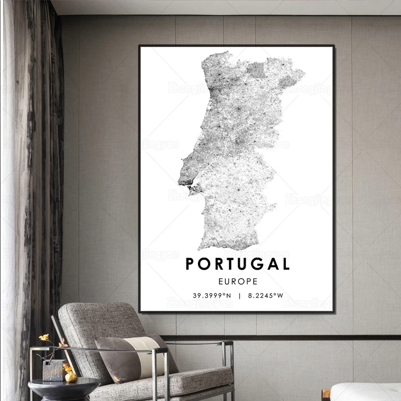 Черно-белая карта города, Европа, задний плакат, HD печать, настенное искусство, холст, нордическая картина Landspace для домашнего декора