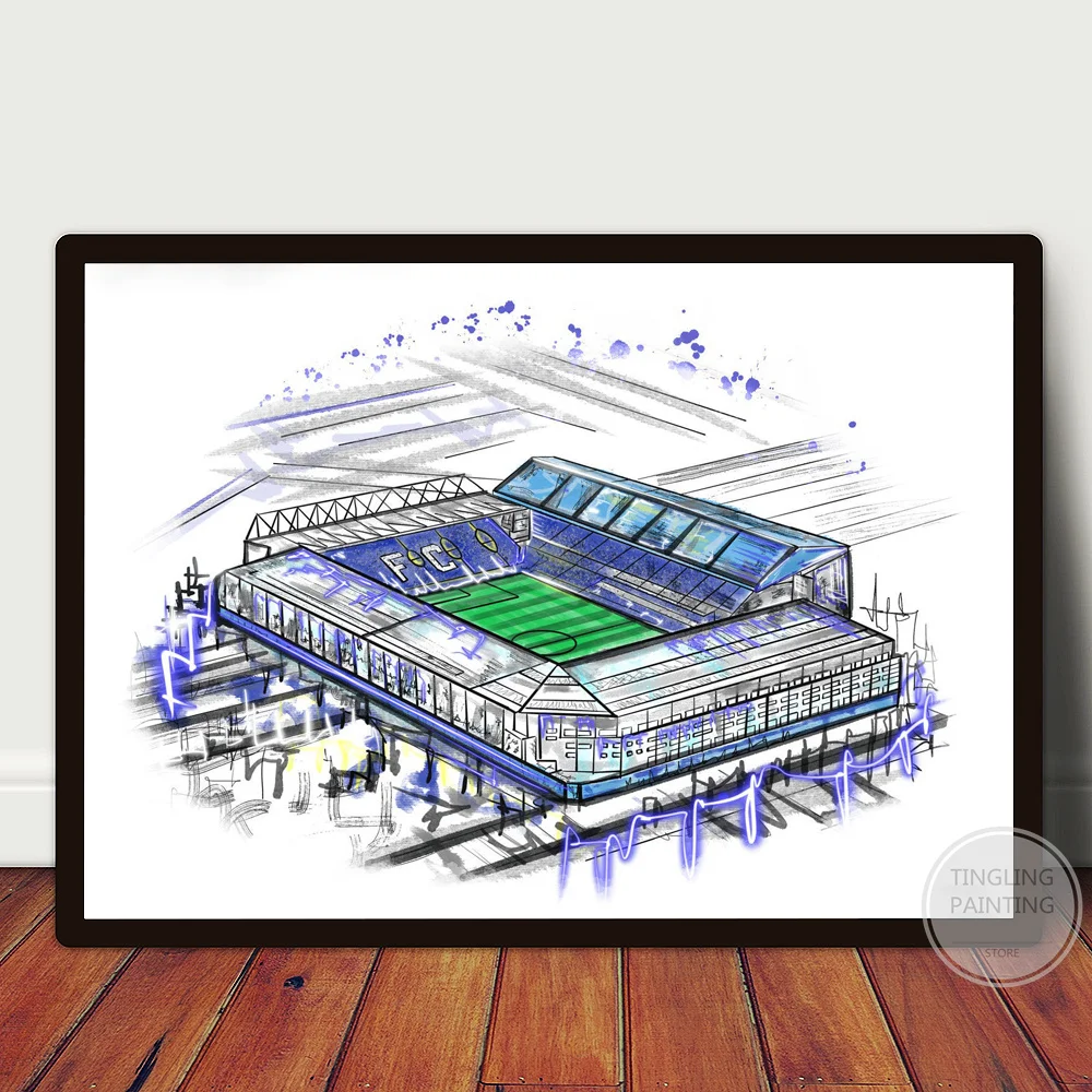 ЕВА ФК Goodison Парк Стадион плакат Холст Эскиз настенная живопись Премьер Лига Футбол тема украшение для дома подарки для фанатов