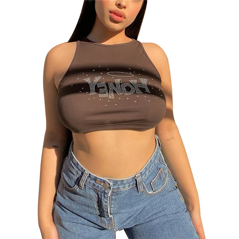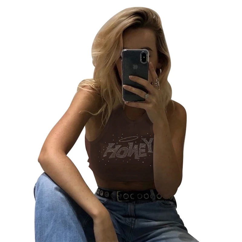 Кроп-топ Y2K женский без рукавов, блестящая майка с надписью Honey, облегающая Клубная уличная одежда, лето