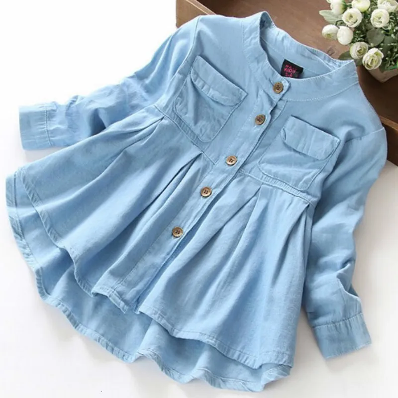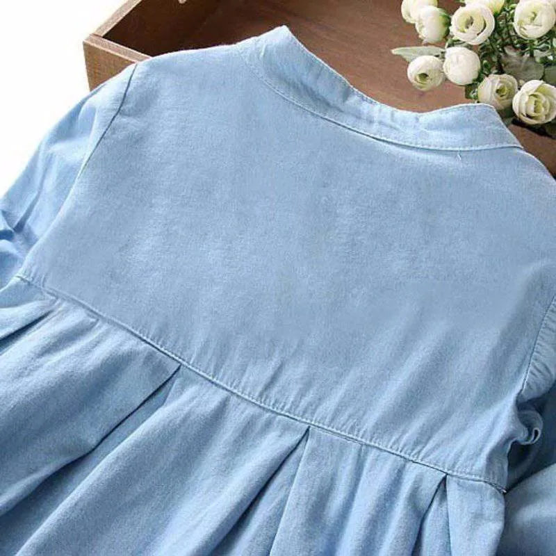 Джинсовое платье для девочек, с длинным рукавом, легкое Плиссированное, на пуговицах, От 2 до 7 лет