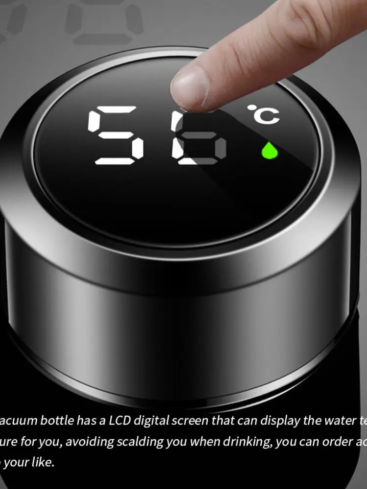 Название продукта: умный Термос Емкость чашки: 500 мл Размер: 23 см в высоту, 6,5 см в диаметре на дне чашки (500 мл) Цвет: розовый/синий/белый/черный/цвет пистолета; 304 внутри и 201 снаружи Изоляция: 12 часов ≥ 45 ℃