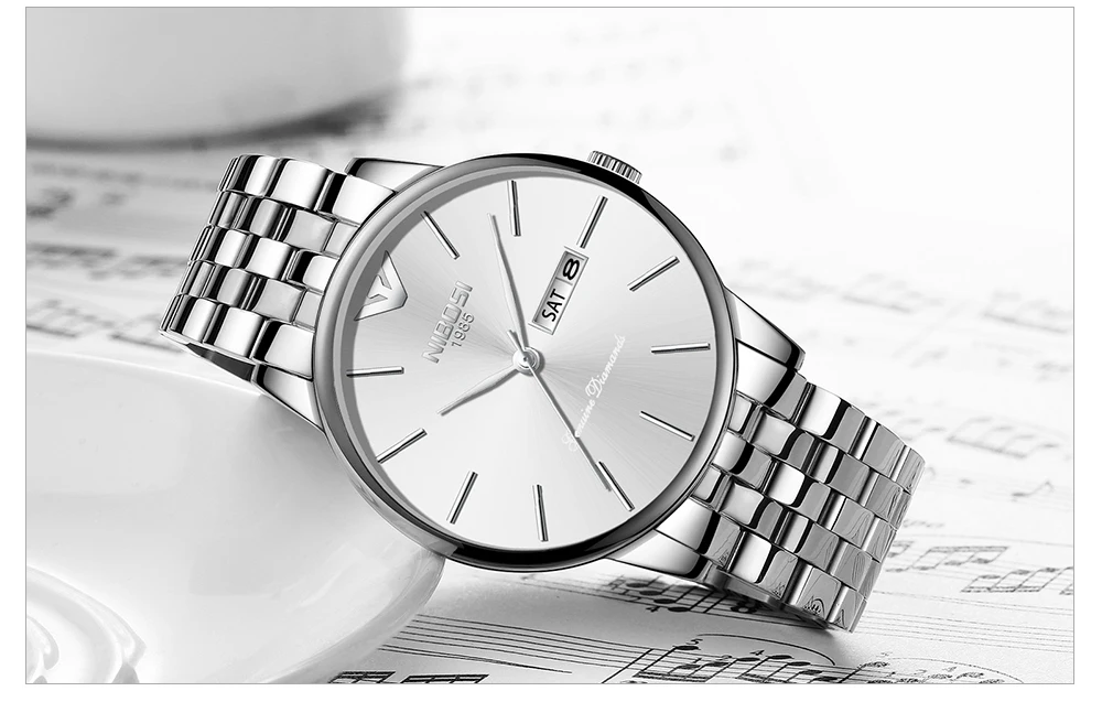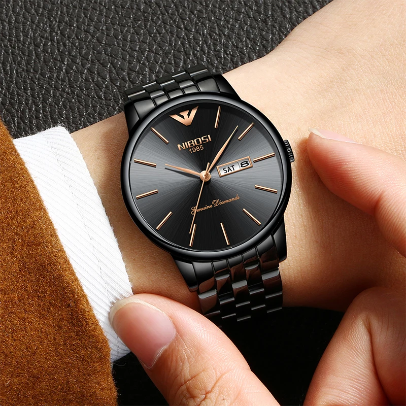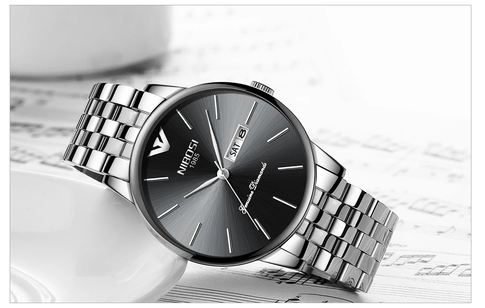 Роскошные мужские часы NIBOSI из нержавеющей стали, водонепроницаем...