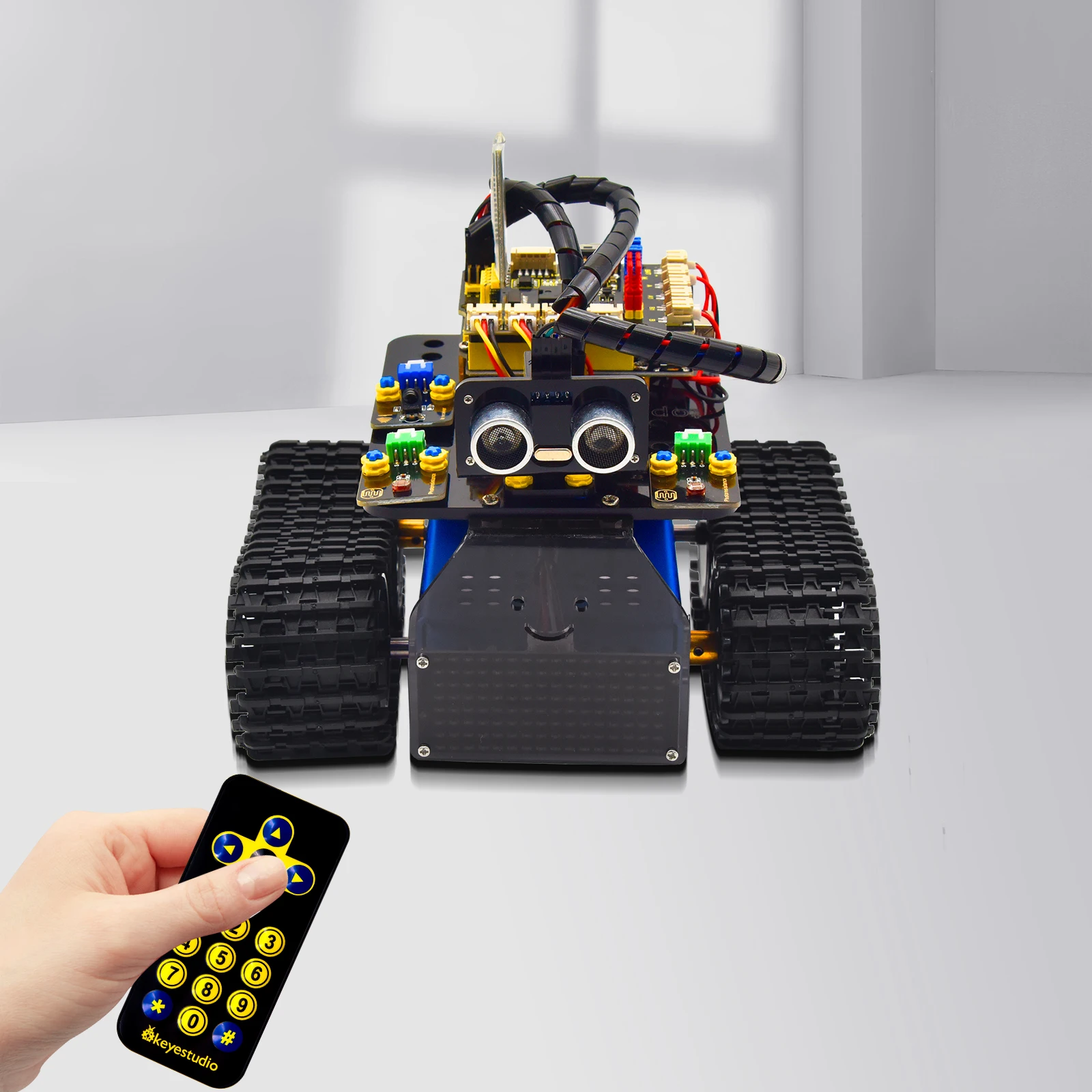 Этот стержень образовательный V3.0 танк-робот обновлен, добавив линейное отслеживание и функцию пожаротушения. Он энергично улучшает отношения между детьми и родителями, и искрит воображение детей через программирование и кодирование.