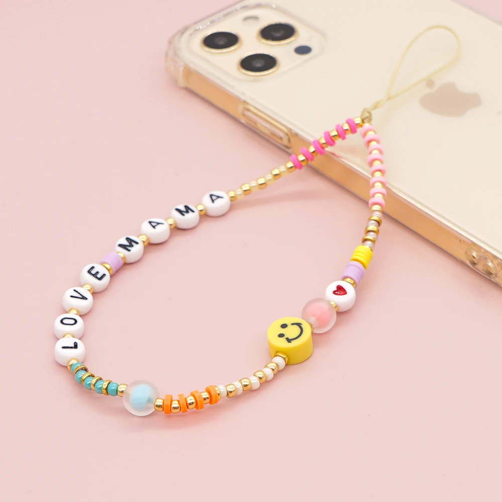 Go2Boho украшенная бисером цепочка для телефона чехол со смайликом очаровательное жемчужное искусственное украшение для телефона ремешок для мобильного телефона с надписью