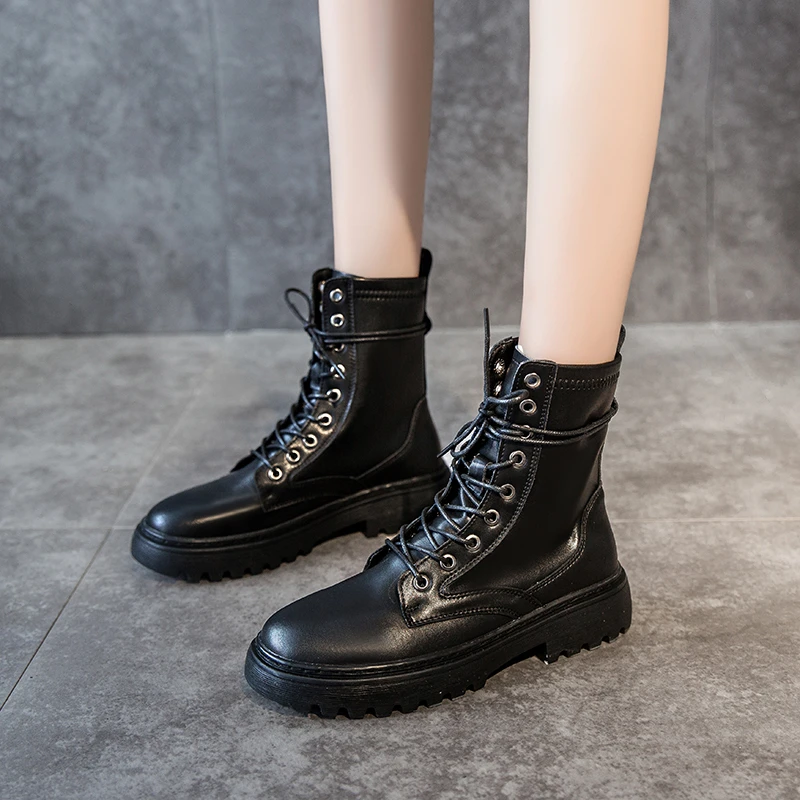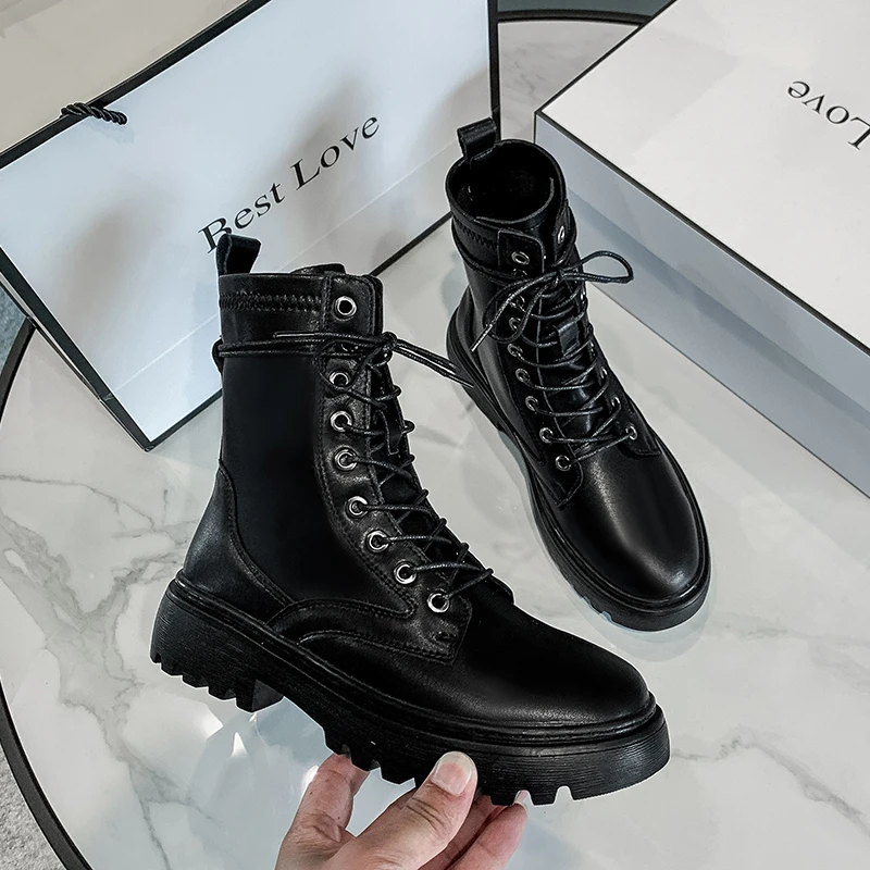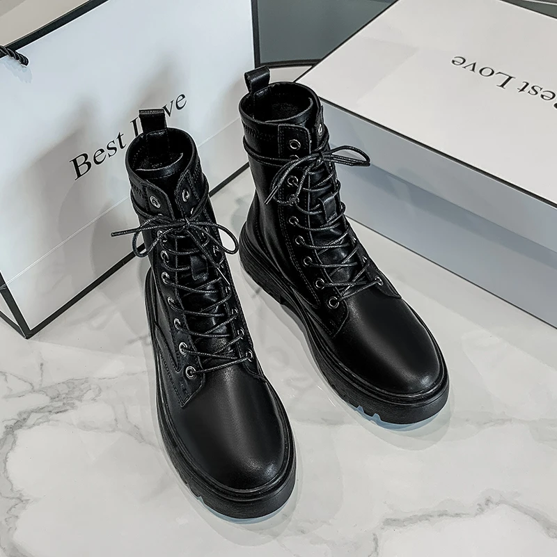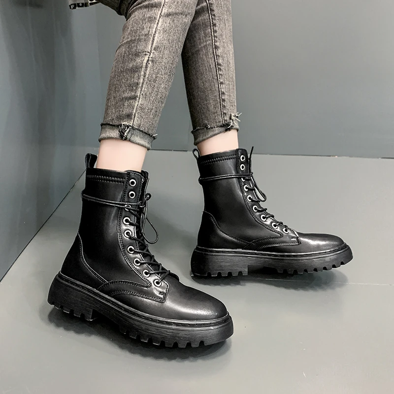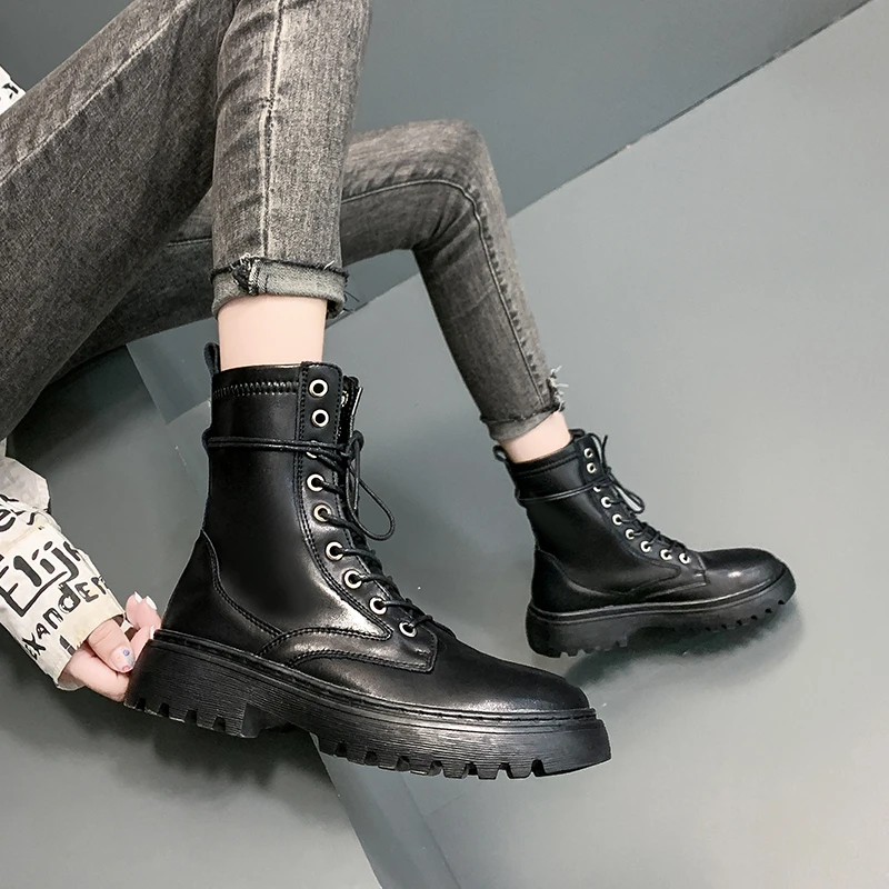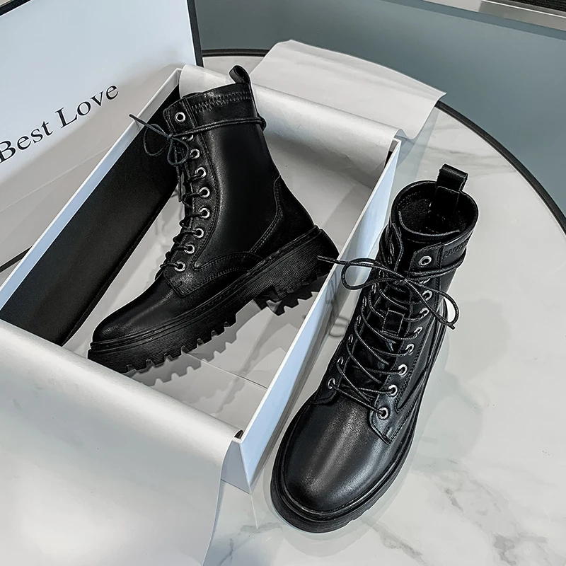Женские ботинки из спилка на платформе, черные или белые мотоциклет...