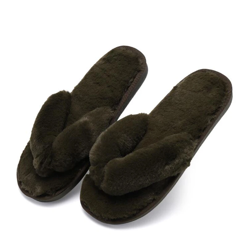 Теплые пушистые шлепанцы для женщин, уютные сланцы для пола из иску...