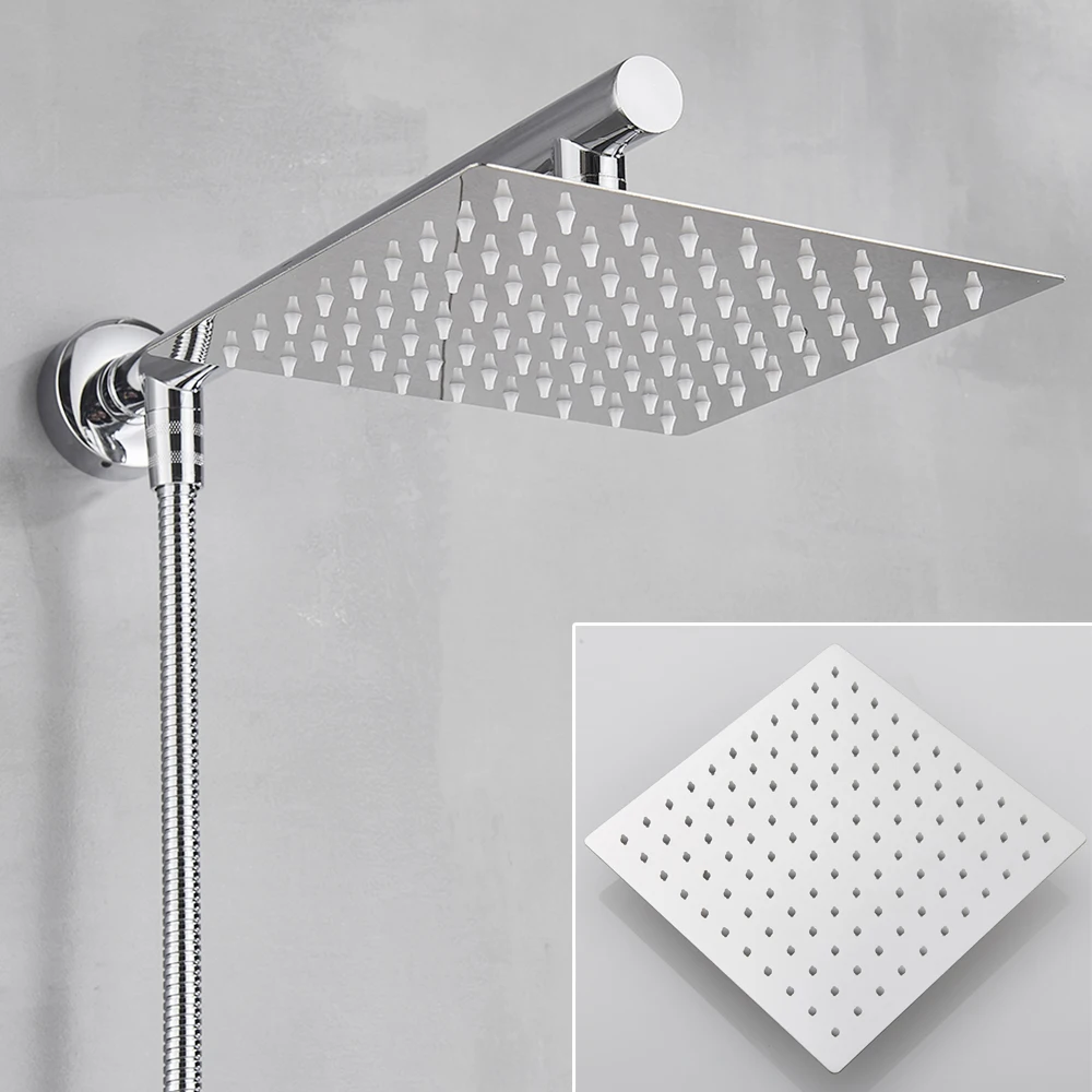 Myqualitfe Бесплатная доставка 10-дюймовая дождевая квадратная фотоэлектрическая насадка для душа из нержавеющей стали настенный шланг
