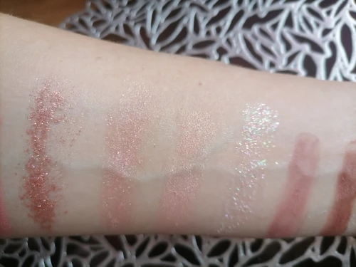 Коробочка содержит 10 цветов. Тени сверху имеют маслянистую текстуру, ярко выраженный блеск. Думаю лучше использовать праймер, для лучшей растушевки, чтобы не сыпались. Нижний ряд теней, приятная бархотная текстура, без намёка на какой либо шиммер. Мне понравились❤️