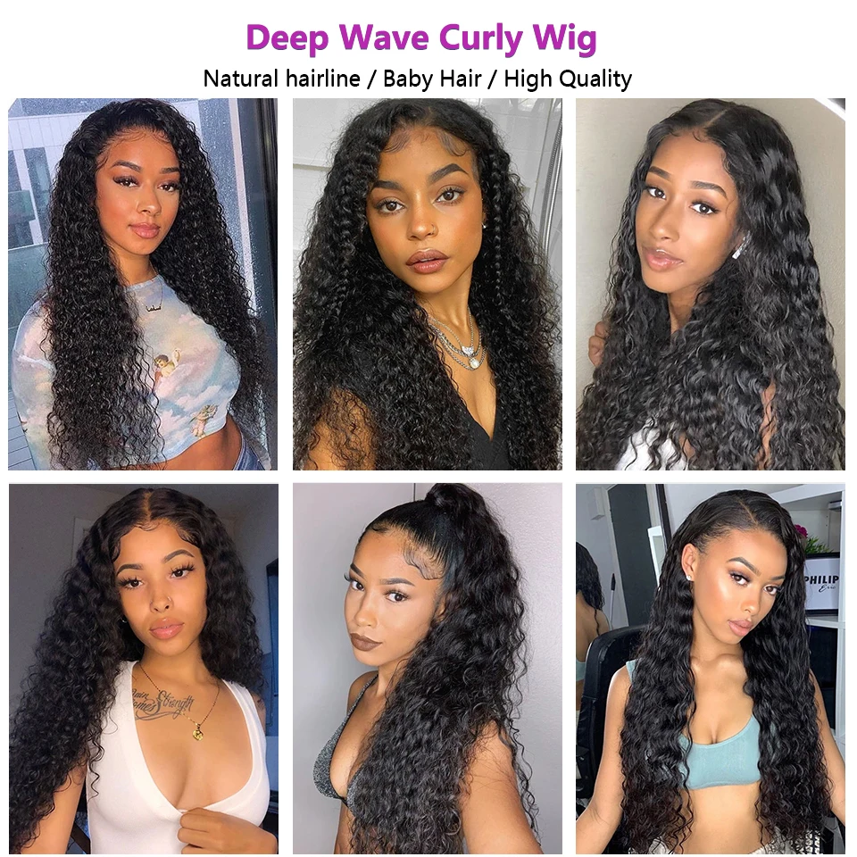 Парик с глубоким волнистым фронтальным париком, 180 ден, предварительно выщипанный парик, глубокий кудрявый парик с фронтальным кружевом, человеческие волосы, парики для женщин, бразильский парик с глубоким волнистым закрытием
