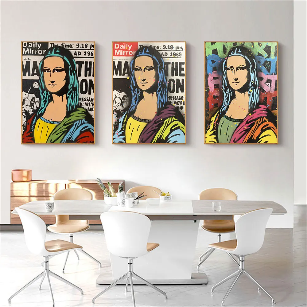 Абстрактный граффити Мона Лиза Портрет постер, Поп-Арт холст картина на стену печать картина для гостиной украшение для дома