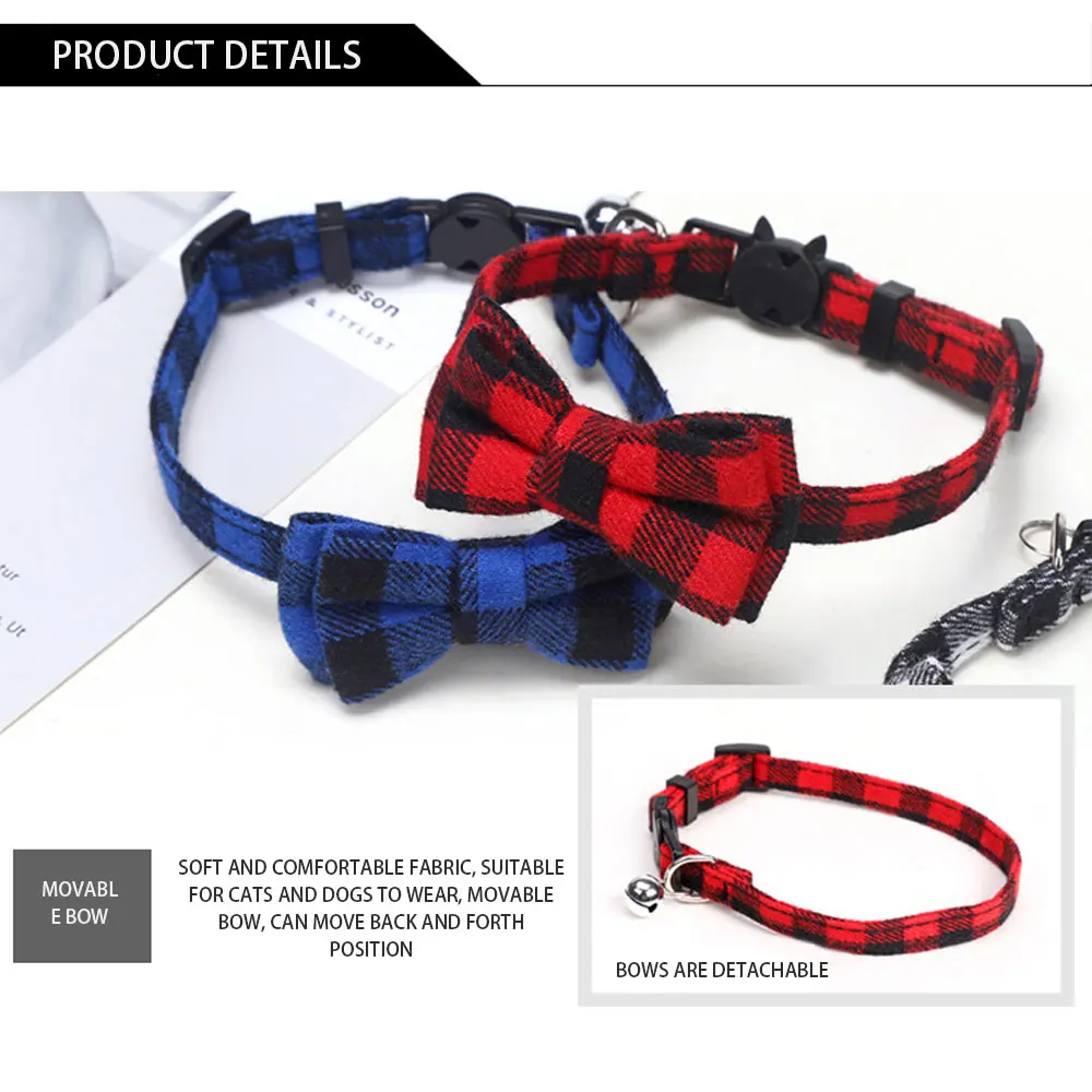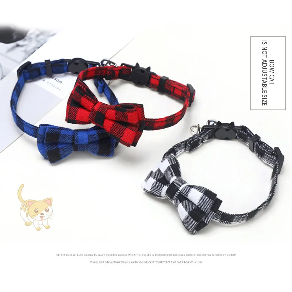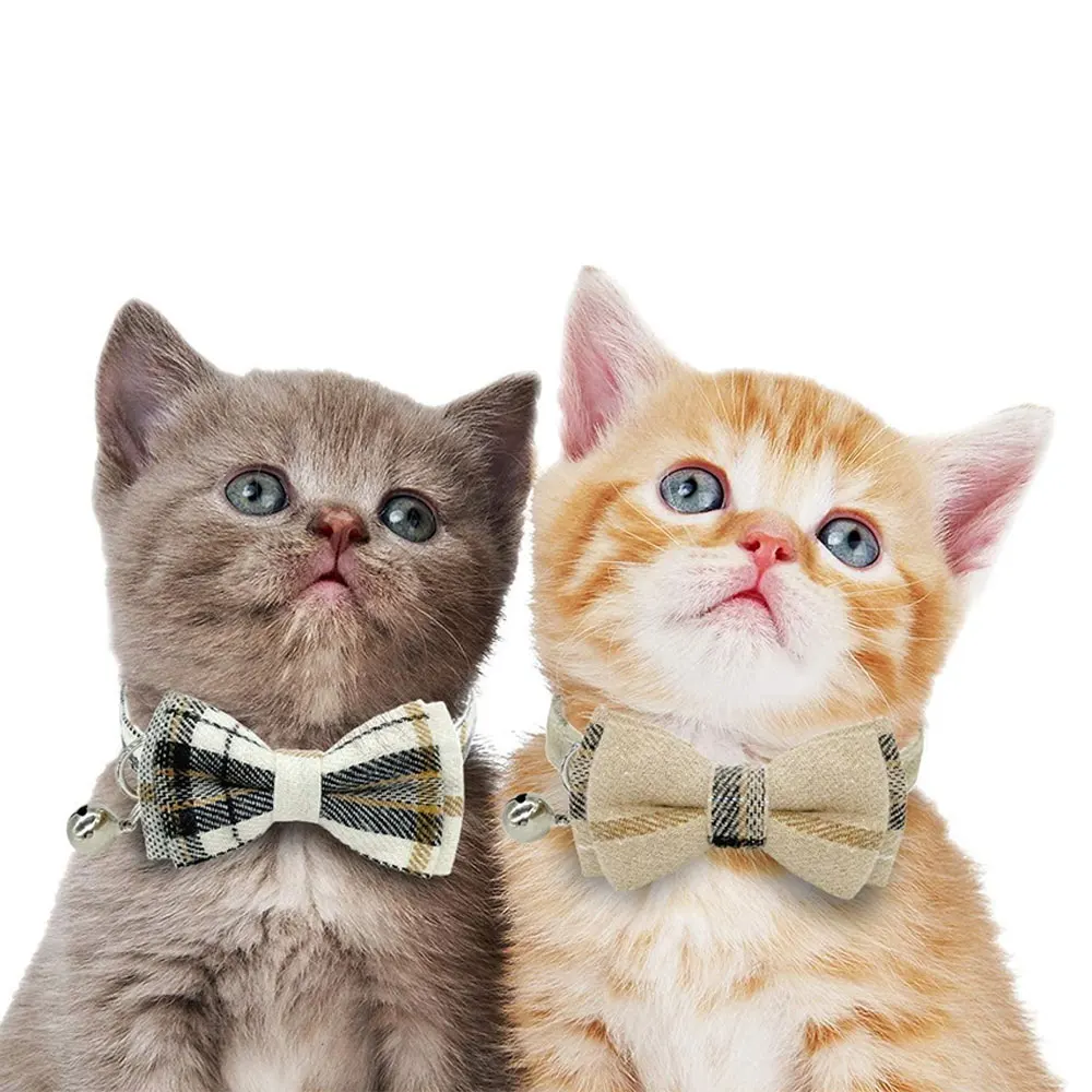 Красочные клетчатые Ошейники в клетку для кошек, хлопковые полосатые ожерелье с бантом, галстук-бабочка, для щенков, для маленьких собак, бандана, воротник