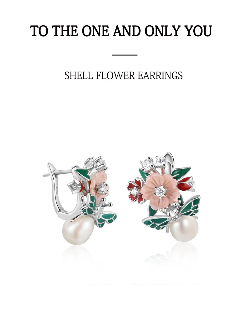 LAYA Shell Жемчужные Серьги Для женщин Из Чистого Стерлингового Сер...