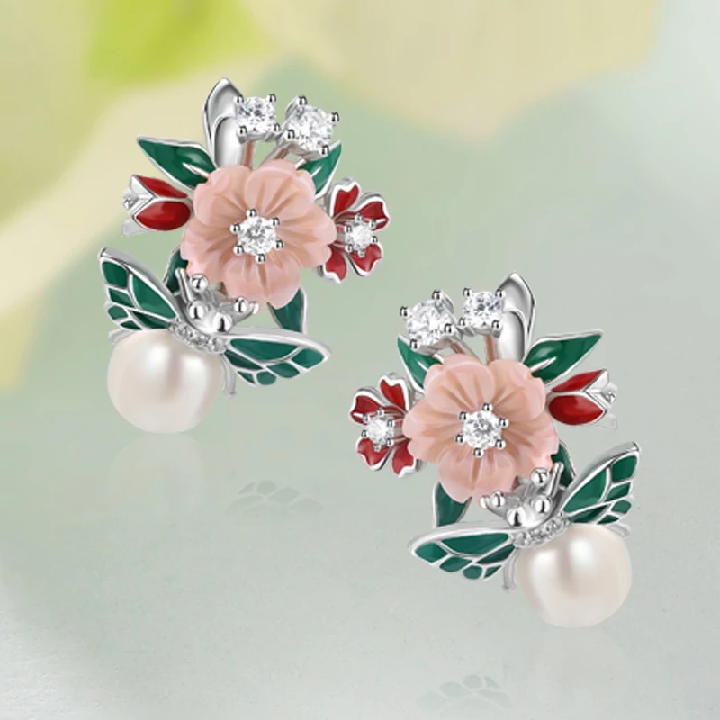 Высокое качество циркон натуральный жемчуг ракушка цветок лист Эмаль Висячие серьги для женщин трендовые ювелирные изделия 2021 тренд