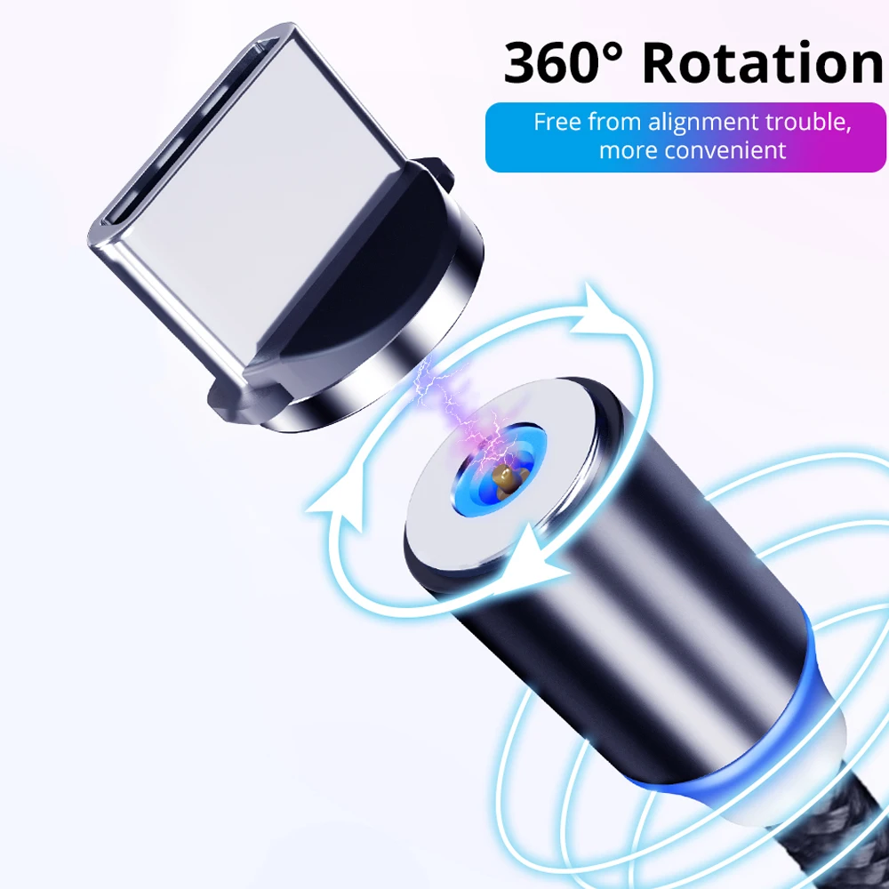 Магнитный кабель usb-c, Micro USB, для iPhone, Huawei, смартфонов, со светодиодной подсветкой, для быстрой зарядки