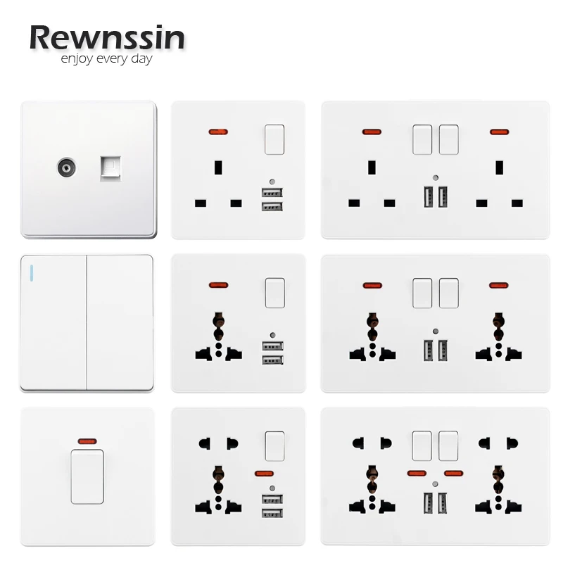 Великобритания стандартный разъем питания 13A двойной USB порт свет...