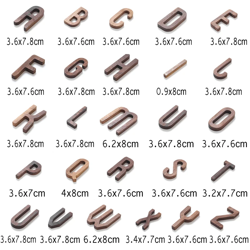 Деревянные буквы алфавита из черного ореха, деревянный настенный Де...