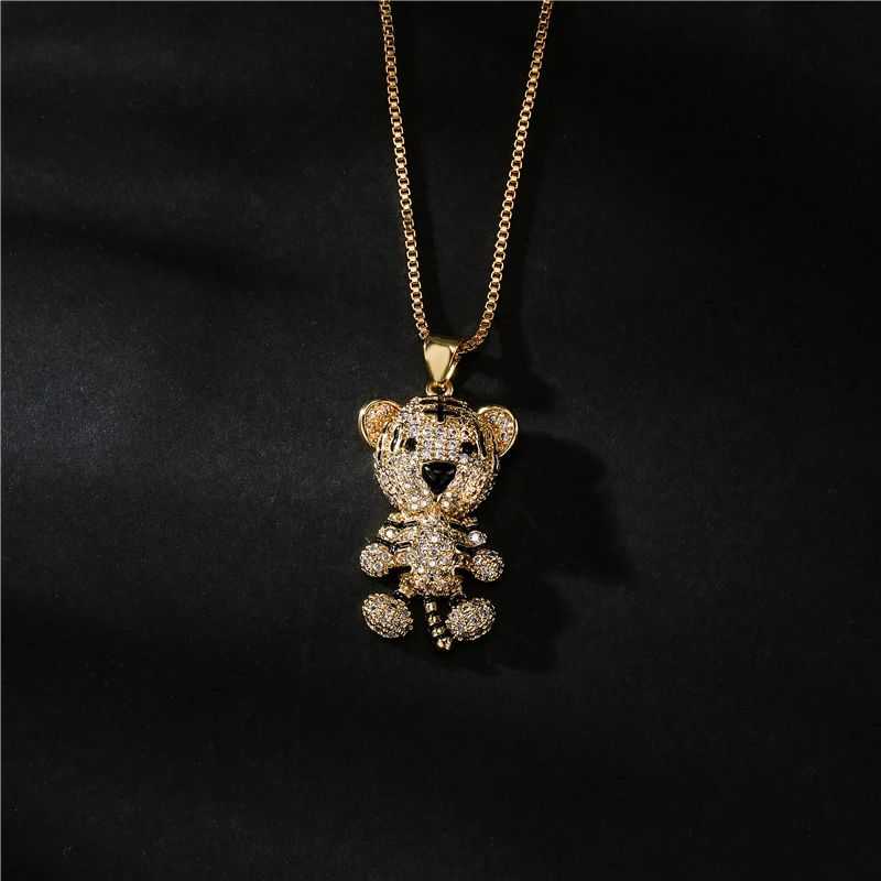 Женское Ожерелье с фианитами, свадебное украшение золотого цвета, 2021, ожерелье C подвеской в виде тигра