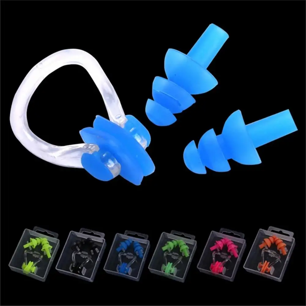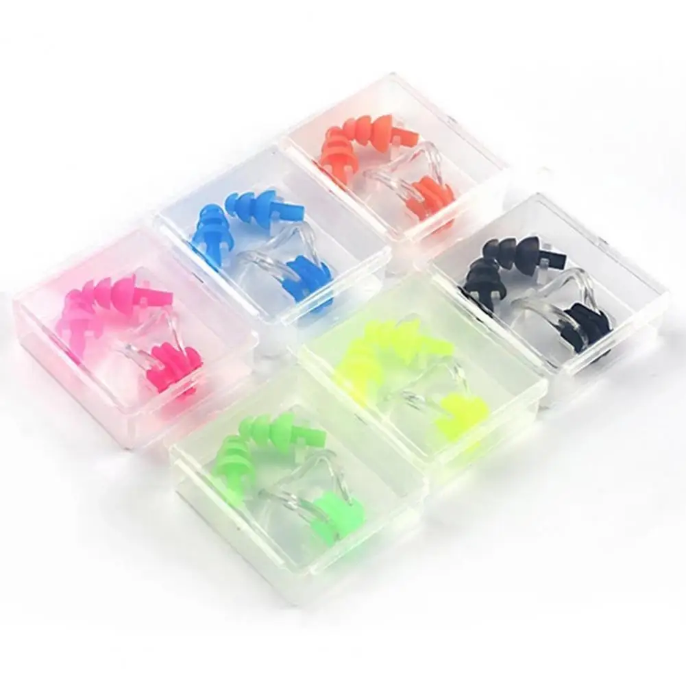 1 комплект, водонепроницаемые силиконовые затычки для ушей для плавания, зажим для носа, набор, коробка, затычка для ушей для серфинга, дайвинга и обучения плаванию