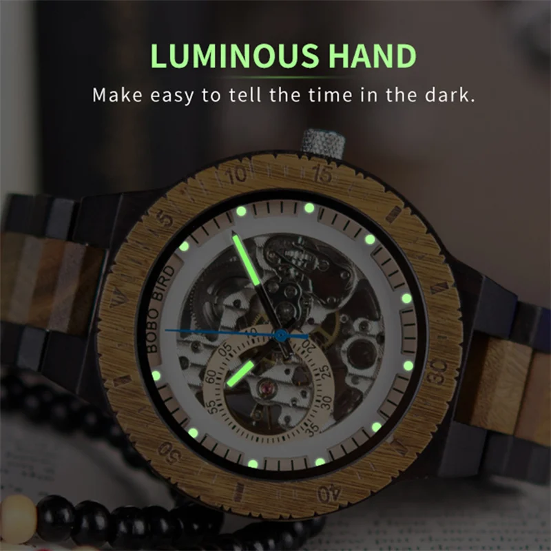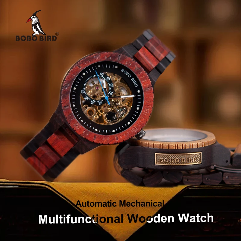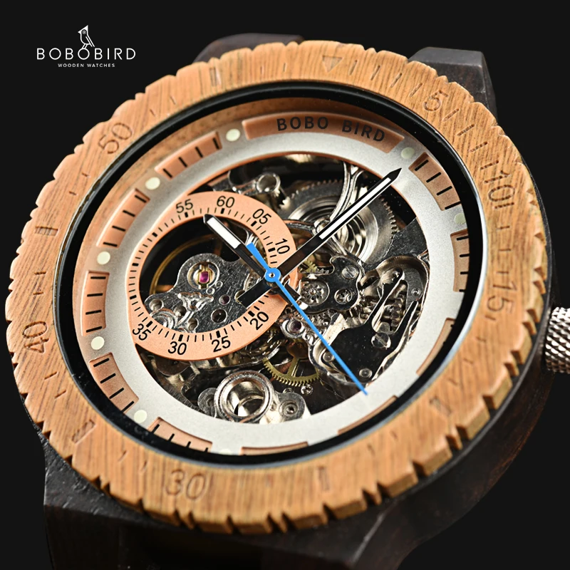 Часы наручные BOBO BIRD Мужские механические, роскошные многофункциональные автоматические с полым корпусом, с хронографом