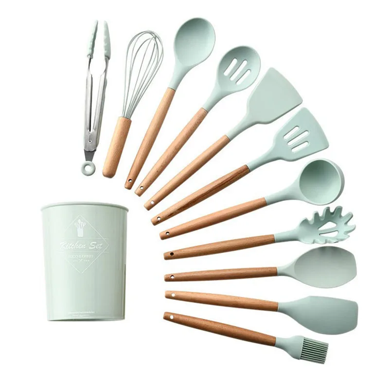 Набор кухонной утвари из 12 предметов, цветная силиконовая антиприг...