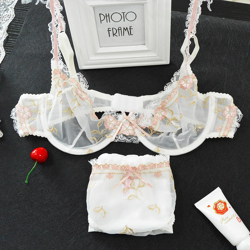 YANDW женский бюстгальтер и трусики, распродажа, отдельные тонкие прозрачные кружевные вышитые сетчатые Цветочные чашки 70 75 80 85 90 95 100 A B C D E F G