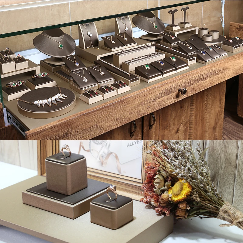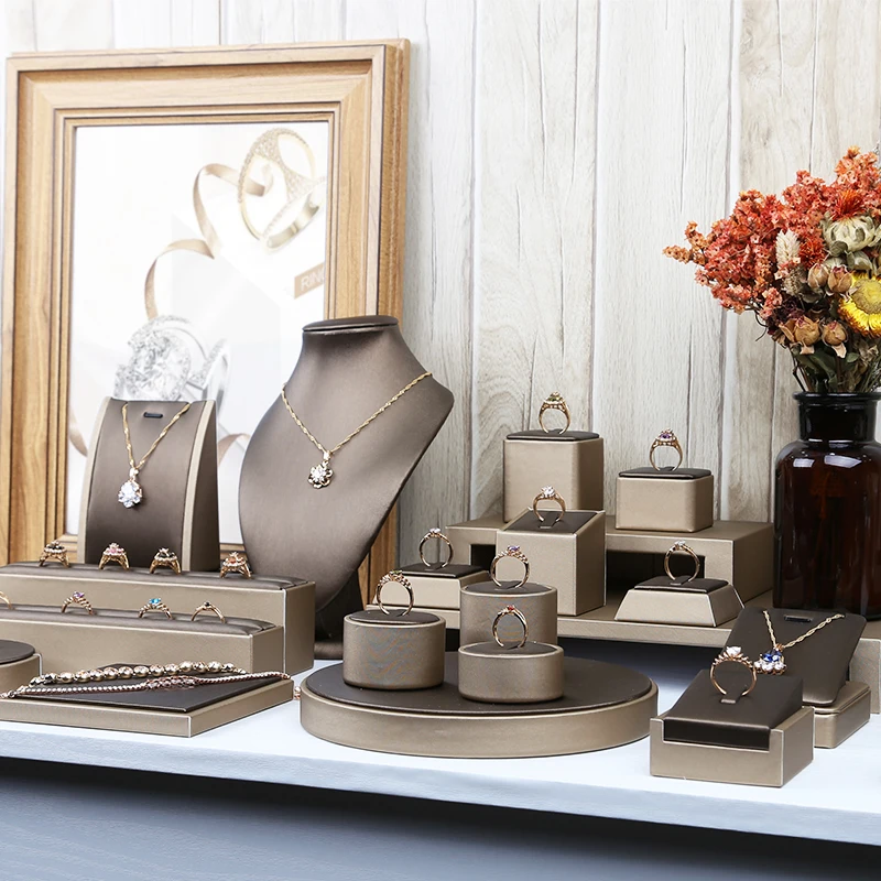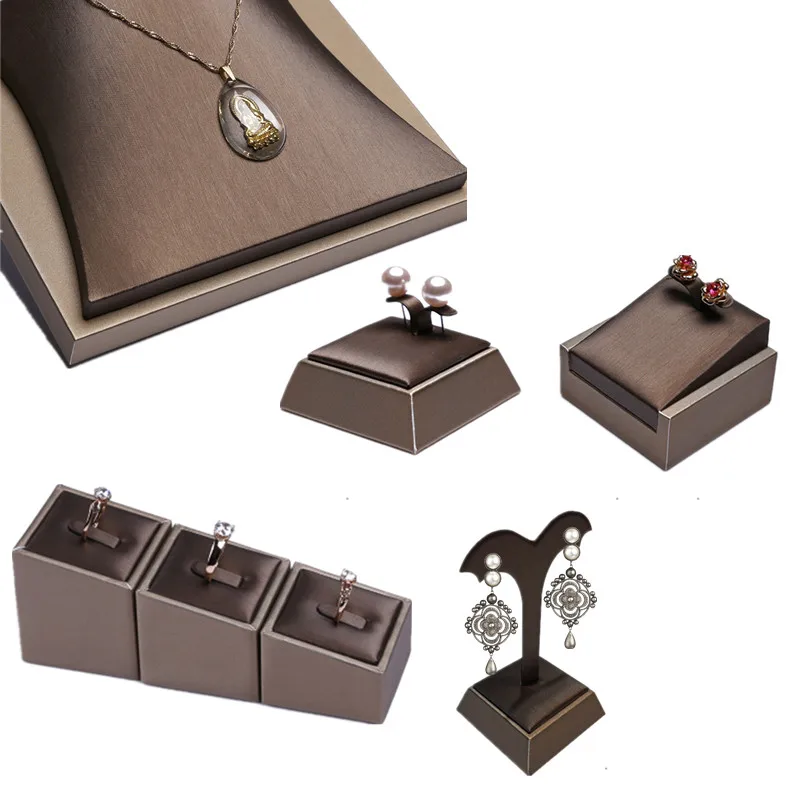 Коричневое кольцо из искусственной кожи, серьги, подвеска, ожерелье, ювелирные изделия, стенд, набор, лоток, браслет, чехол для хранения, держатель