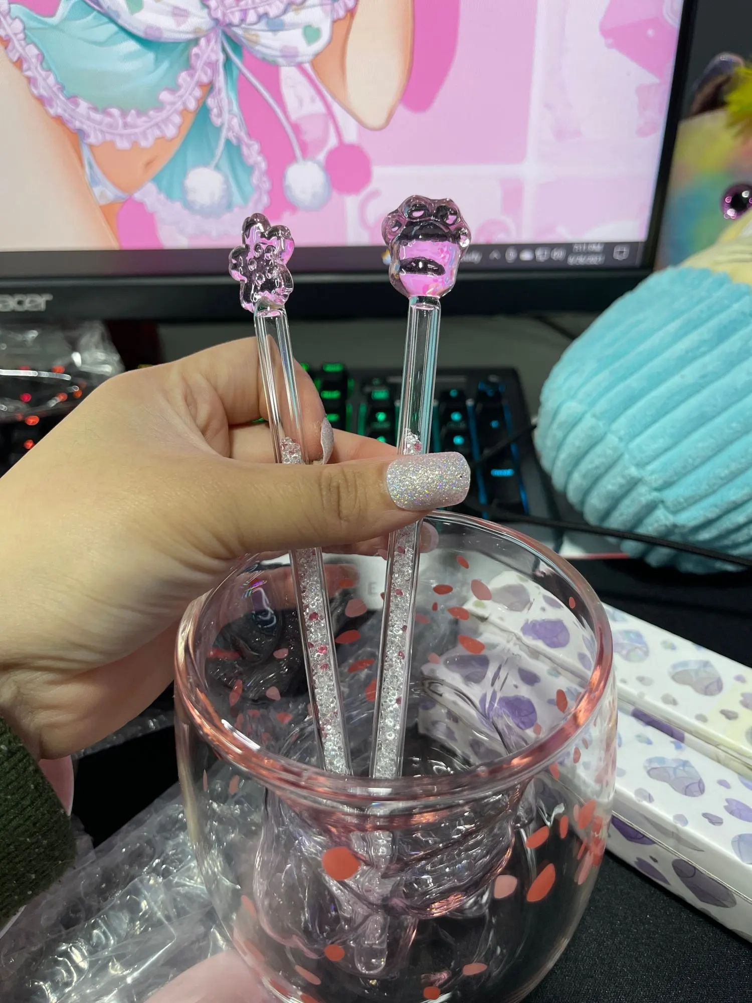 Стеклянная Сакура кошачьи когти звезда бриллиант искусственная чаша для перемешивания кофе напиток мороженое Десерт чайная ложка посуда для напитков