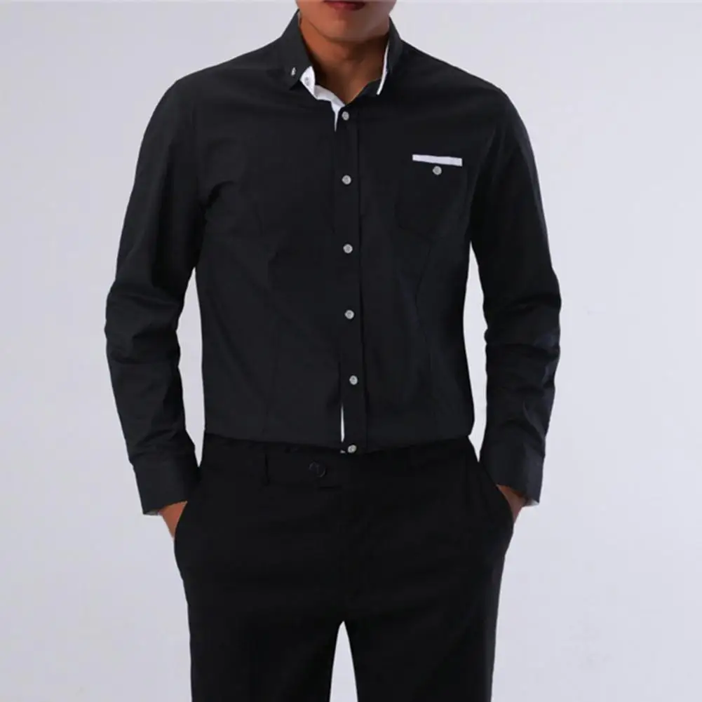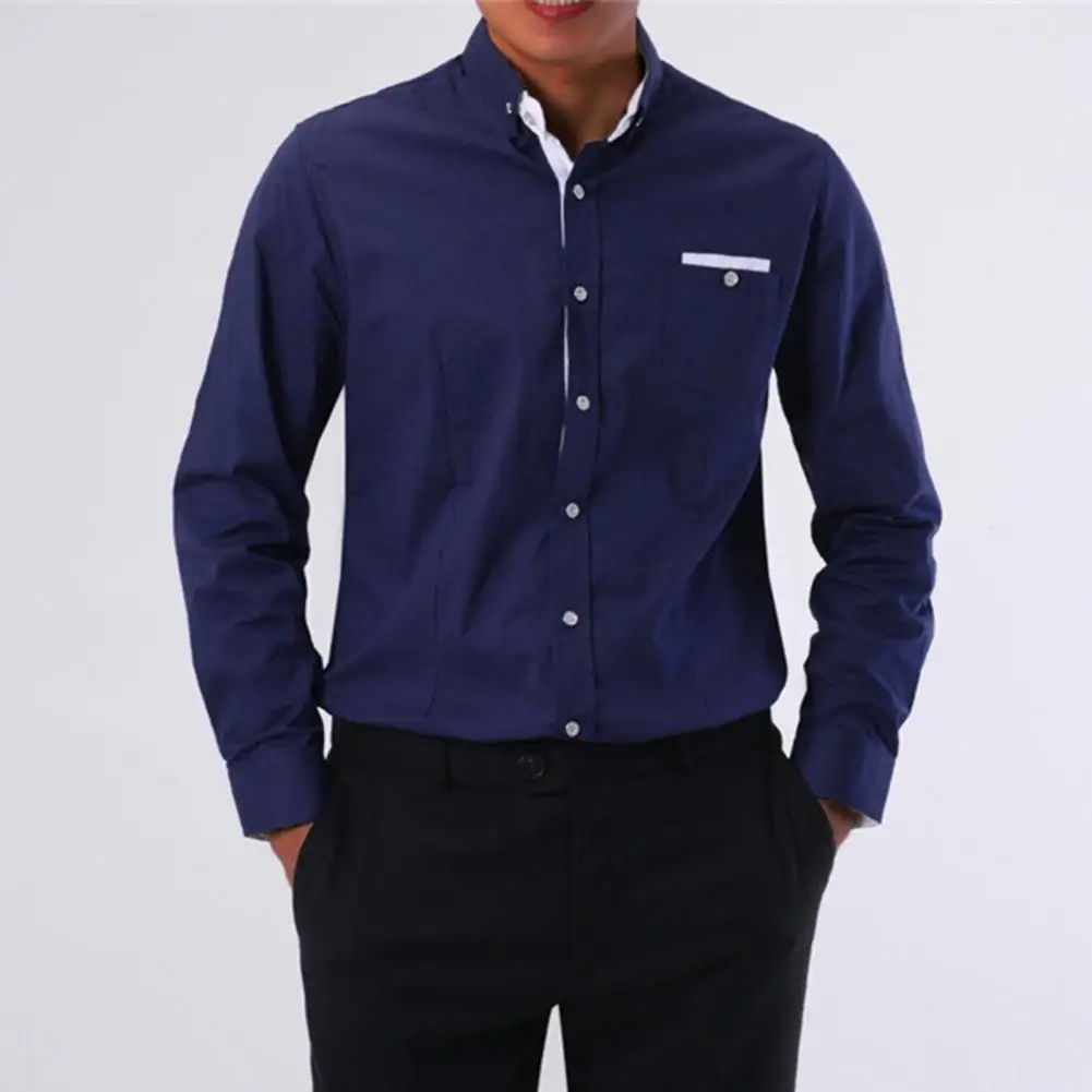 Модная деловая рубашка с длинным рукавом и карманом, удобная для кожи, дышащая однотонная мужская рубашка с отворотом, рабочая одежда