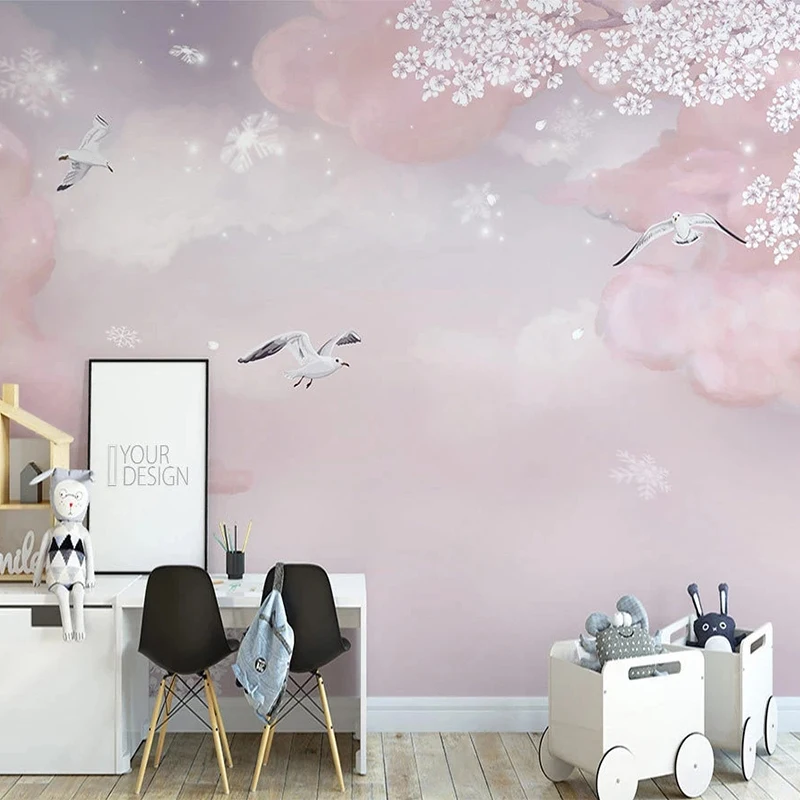 Фото обои скандинавском стиле Ins с рисунками розового цвета, ручна...