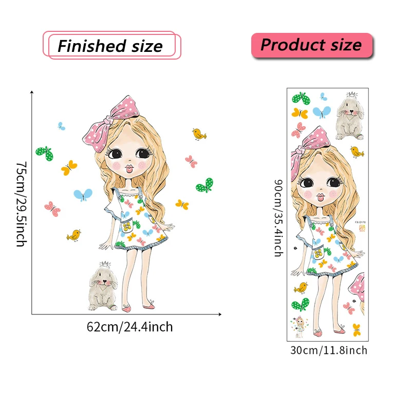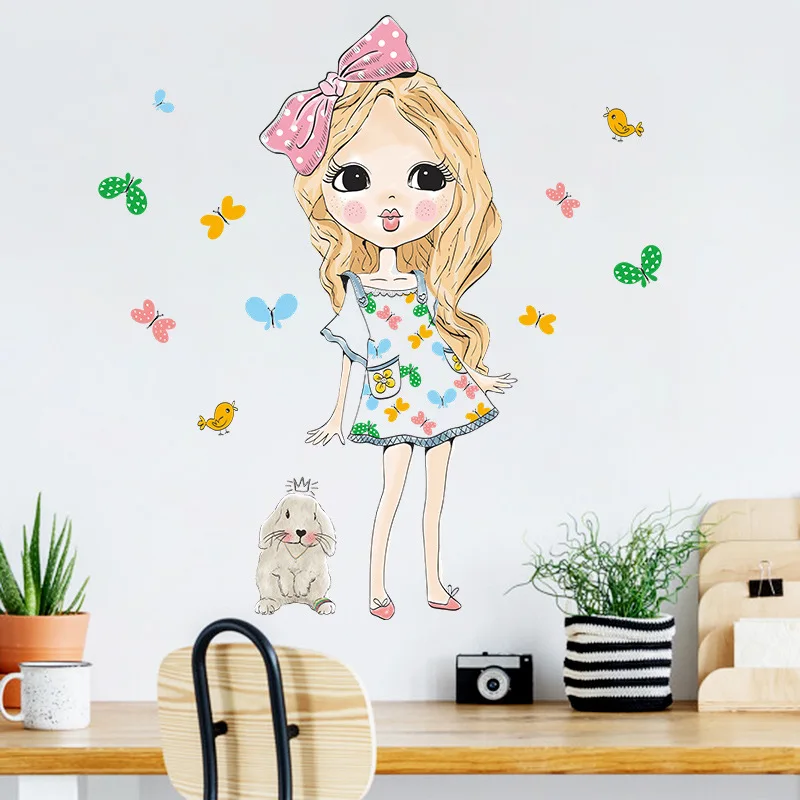 Kawaii Наклейка на стену для декора комнаты маленькой девочки милый...