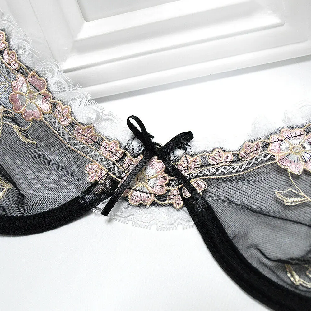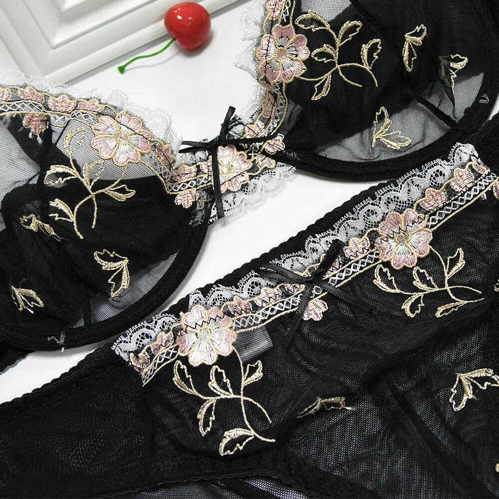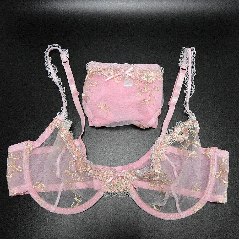 Комплект женского кружевного нижнего белья, прозрачный бюстгальтер ...