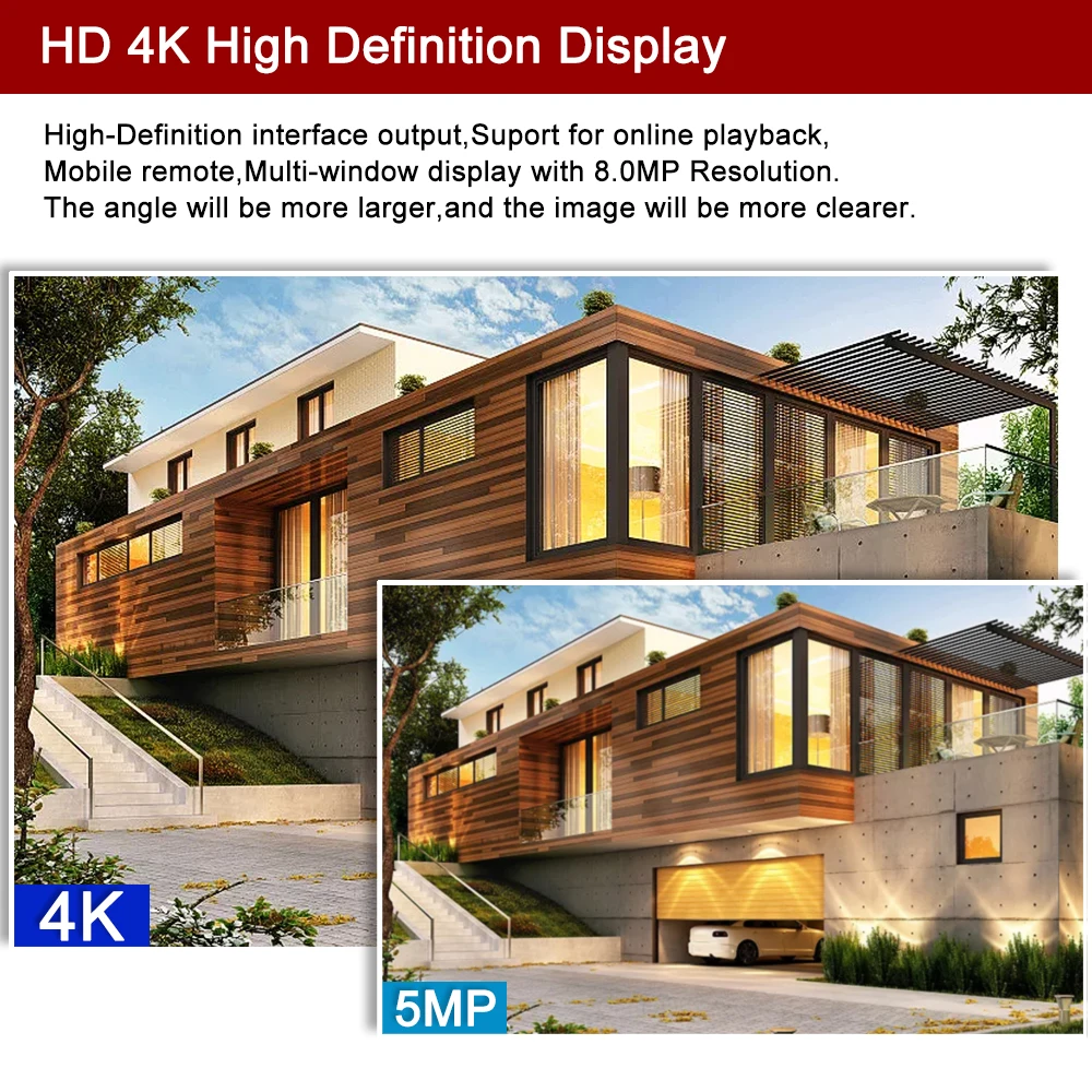 H.265 более четкий, HD разрешение предлагает вам лучшее качество изображения в более низкой скорости. Экономьте больше места для хранения, вы можете уменьшить размер файлов 40%-50%, сэкономить место для хранения HDD и снизить стоимость покупки.
