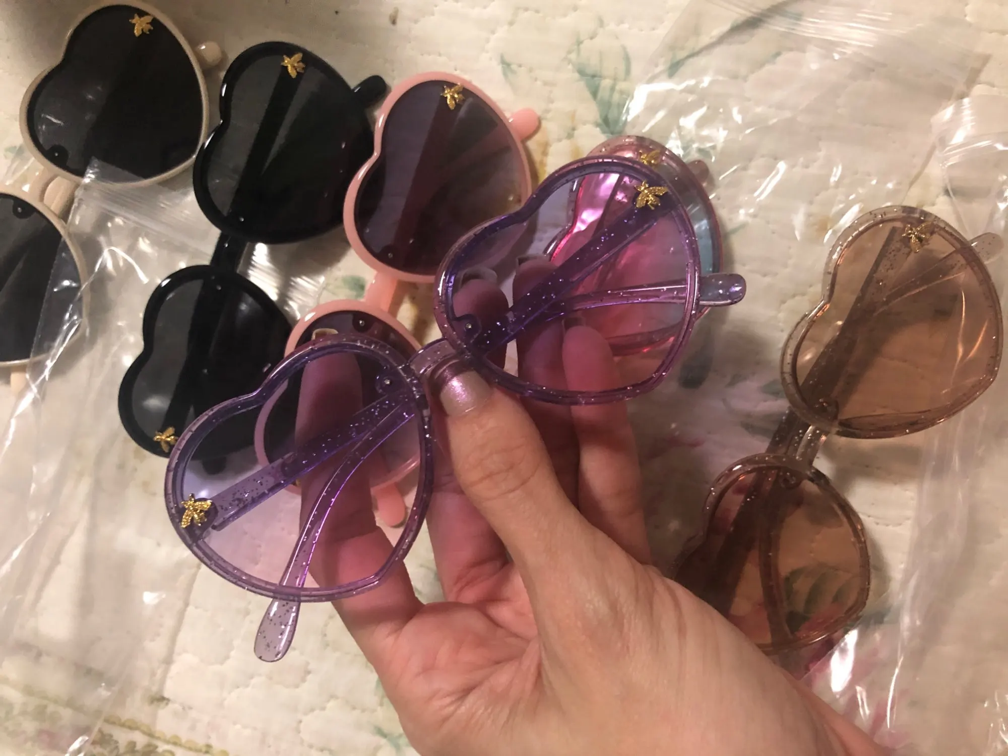 Сказочные солнцезащитные очки, хотя фактические цвета линз не такие яркие в реальной жизни, как на фото. Все еще хорошо подходит для вечернего костюма. Помечено как дети, подойдет взрослым.