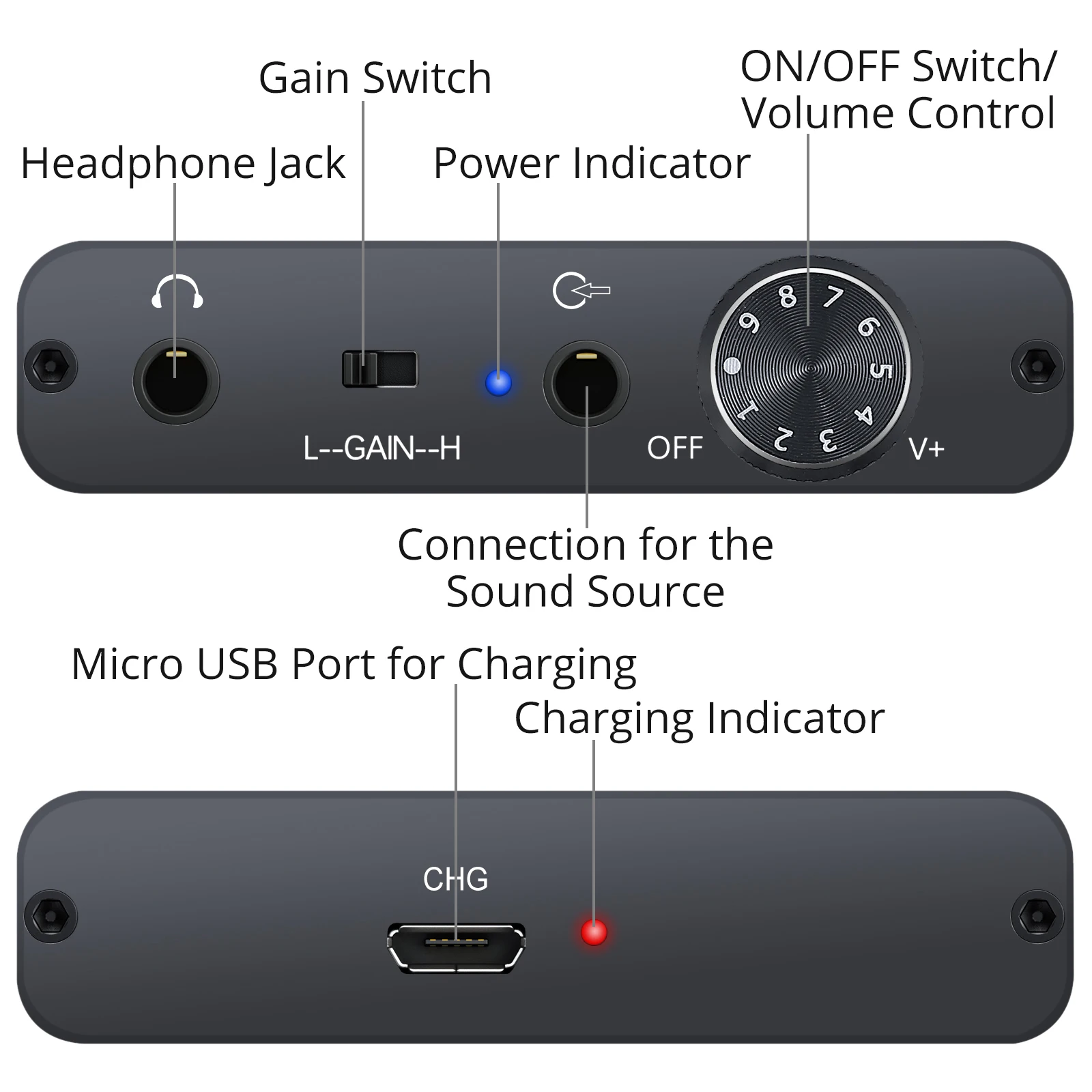 Двухступенчатый Переключатель усиления усиливает входной сигнал в цепь усилителя для оптимальной производительности наушников. Позволяет выводить не только громкий звук, но и более четкий и реальный стереозвук без искажений