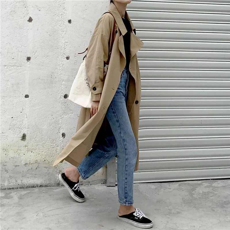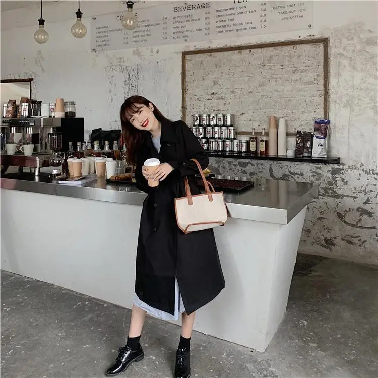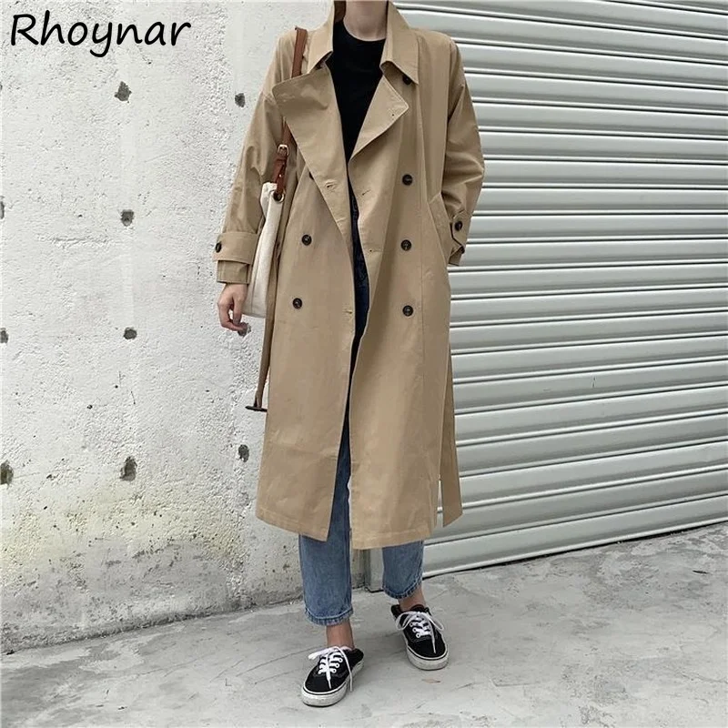 Женский модный мешковатый двубортный Тренч Ulzzang, однотонная простая Студенческая шикарная винтажная популярная Повседневная Женская одежда для подростков, Новинка