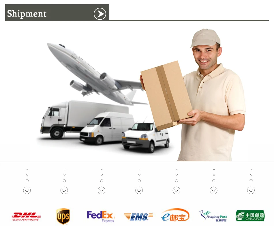 Срок отгрузки мы принимаем DHL, UPS, FedEx ,TNT, EMS. DHL, UPS, FedEx, TNT требуется около 2-5 рабочих дней для доставки. EMS может быть медленнее.