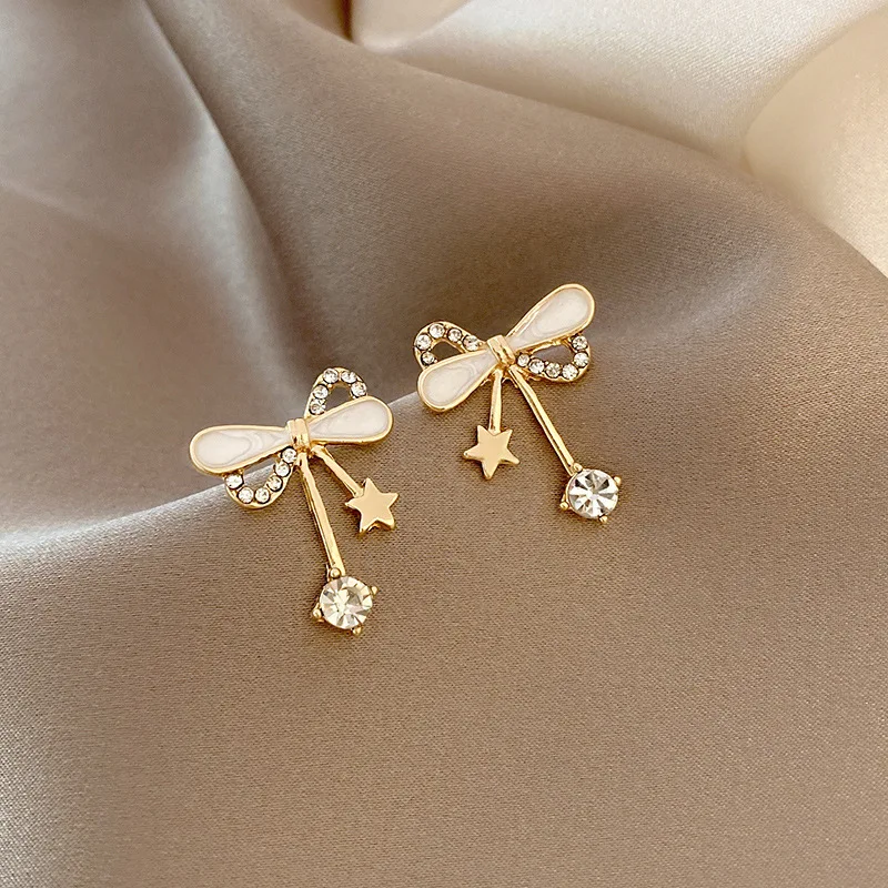 Корейские модные золотые серьги-подвески с бантом и цирконом для женщин, новые ювелирные изделия, Элегантные Изысканные Роскошные серьги-гвоздики для вечевечерние, 2021