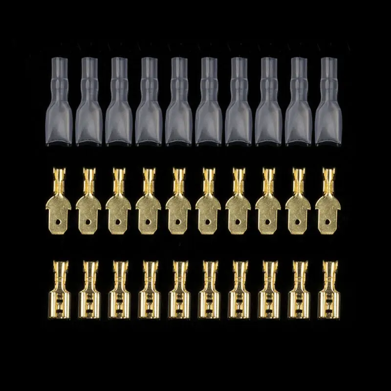 6.3 Тип: Внутренняя Диаметр: 6,3 мм, Толщина: 0,4 мм (папа), 0,8 мм (женские), совместимый провода: 0,75-2.5mm2 (AWG 18-14)