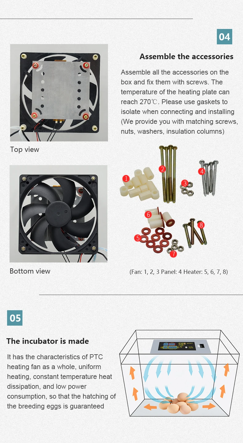 Описание:Это своего рода высококачественный инкубатор для яиц, принимает нагревательный лист PTC, автоматическую постоянную температуру, энергосбережение, дает вам стабильную инкубаторную температуру. Сложный датчик температуры, обеспечивает точность сбора информации. Оснащен вытяжным вентилятором, равномерным рассеиванием тепла, с низким уровнем шума и может обеспечить длительный срок службы. DIY Мини принадлежности для инкубаторов, подходит для акриловой доски, пластмассы, стекла, дерева, твердой доски и т. Д ..Особенности:1. Оснащен вытяжным вентилятором, равномерным рассеиванием тепла, с низким уровнем шума и может обеспечить длительный срок службы.2. Принять PTC нагревательный лист, автоматическая постоянная температура, энергосбережение, дать вам стабильную инкубаторную температуру.3. Выбранная панель чипа, одна кнопка для управления.4. Цифровой датчик влажности, с стабильной производительностью.5. Сложный датчик температуры, обеспечивает точность получения информации.6.DIY Мини принадлежности для инкубаторов, подходит для акриловой доски, пластмассы, стекла, дерева, твердой доски и т. Д.Характеристики:Название: DIY Мини принадлежности для инкубаторовМодель: HTMC-7Номинальная мощность: 80 ВтНоминальное напряжение: 220 ВКонтроль температуры: 37 ℃-39 ℃