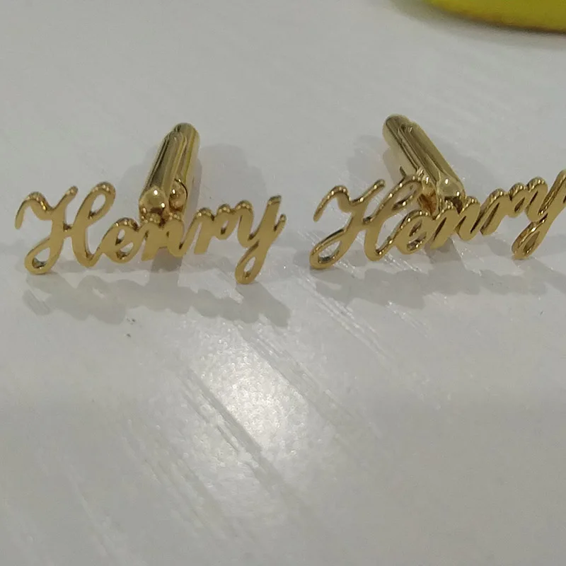 Запонки унисекс из нержавеющей стали, с именем на заказ, кнопки-звенья