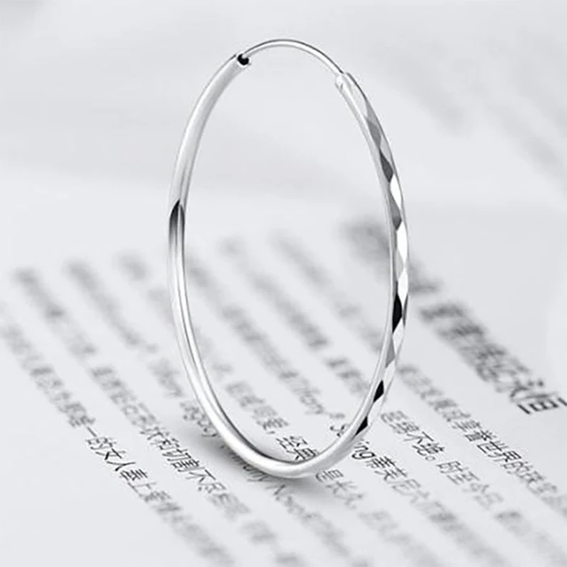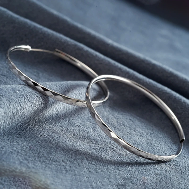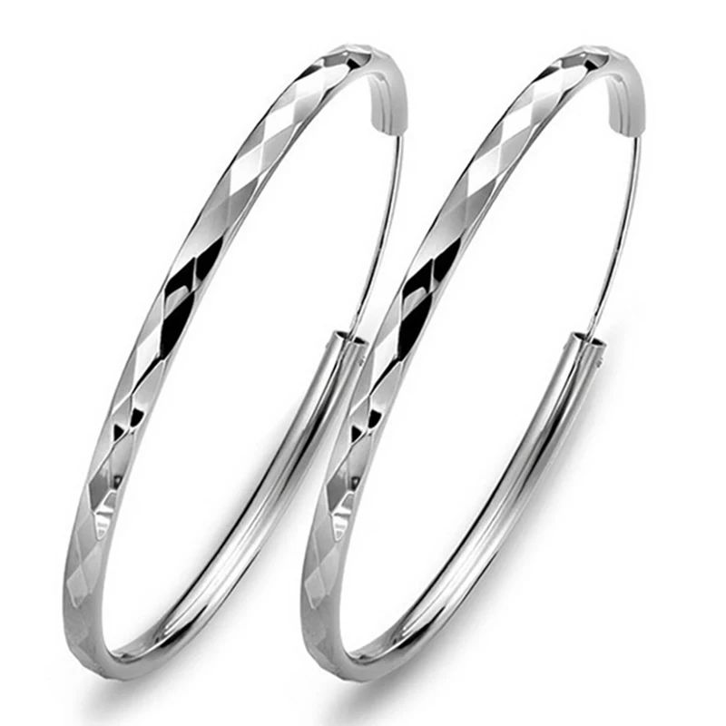 Серьги-кольца женские большие гладкие, простые украшения для ушей в вечернем стиле, серебристого цвета, Подарочная бижутерия