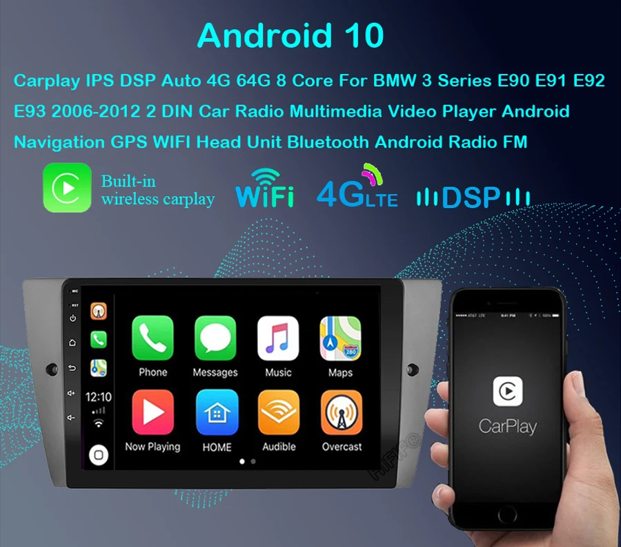 Автомобильный видеоплеер Carplay 4G WIFI Android 10 для BMW 3 серии E90 E91 E92 E93 2005-2012 GPS Navi Stereo 2 din радио DSP TPMS OBD2