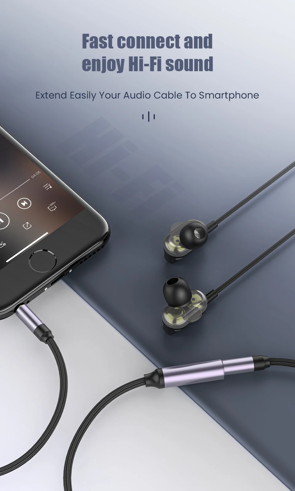 Кабель-удлинитель Aux 3,5 мм, штекер-гнездо, с микрофоном, для авто...