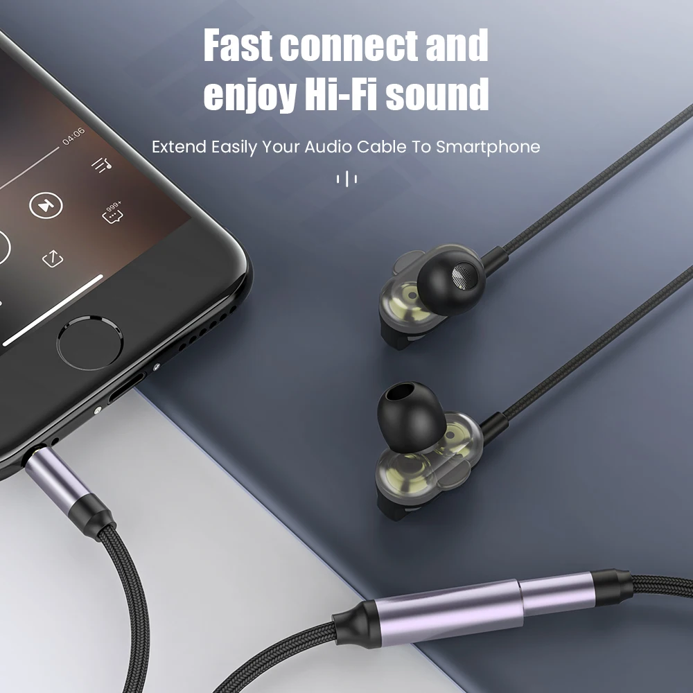 Аудиокабель со штекером 3,5 мм и разъемом AUX, Удлинительный кабель со стереомикрофоном 3,5, аудиоадаптер, совместимый с наушниками для ПК