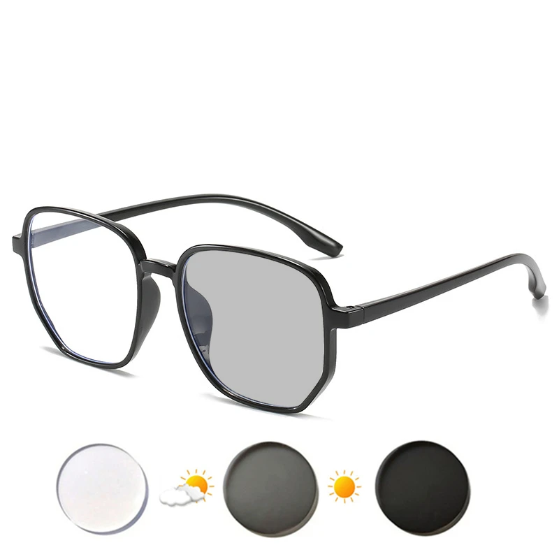 О фотохромные линзы, они будут прозрачными и бесцветными в помещении или в темных местах, но они изменят цвет на открытом воздухе или на солнце, чтобы защитить ваши глаза от сильного светильник.
