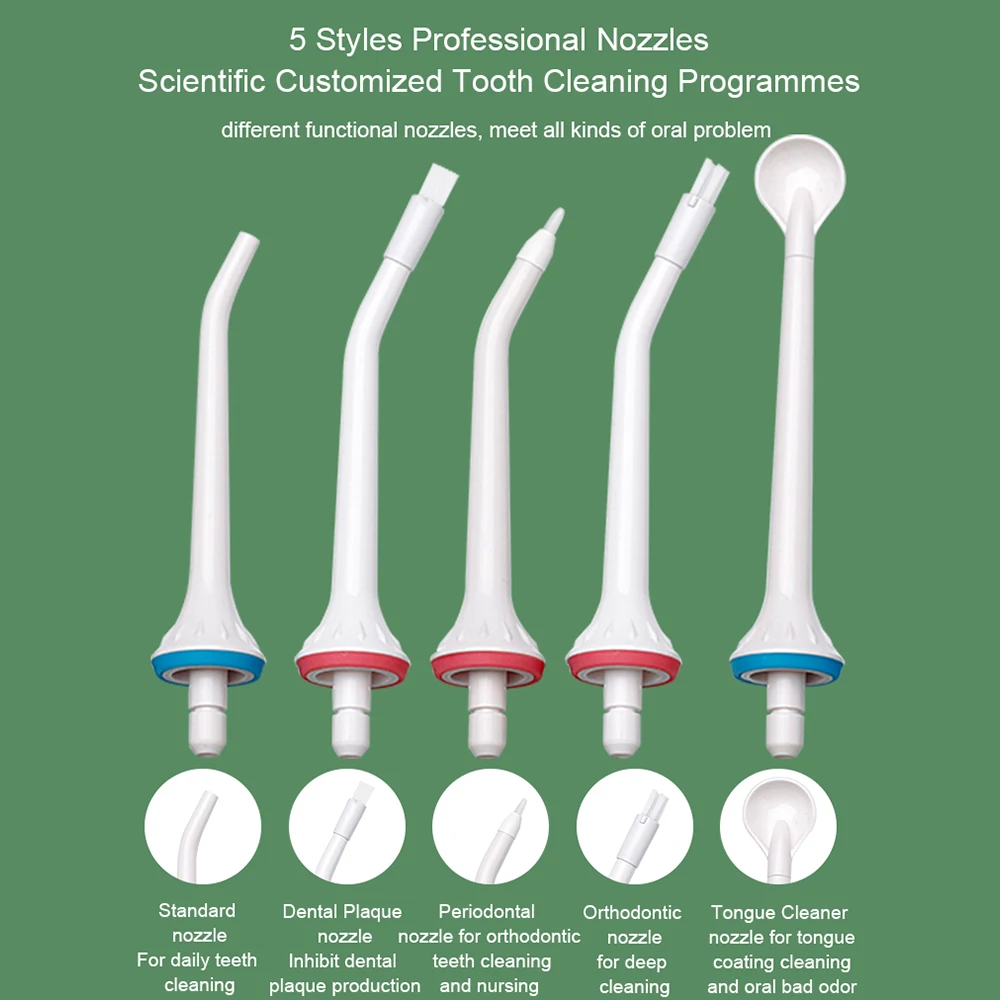 1. Наш беспроводной ирригатор полости рта использует Высокочастотный импульсный поток воды и 360 градусов вращающееся сопло для очистки зубов во всех направлениях и эффективного удаления остатков между зубами, С целью сделать ваши зубы белыми и безупречными.2. Наши продукты обеспечивают 5 режимов переменной частоты очистки, 5 регулируемого давления воды и 6 насадок для удовлетворения ваших личных потребностей и улучшения состояния полости рта.3. Эта Стоматологическая флушер помогает удалить пятна зубного камня, освежить дыхание, уменьшить отеки десен и боль, улучшить кровотечение десен, предотвратить кариес зубов, подсчета и болезни десен.4. Зубочистка оснащена съемным прозрачным резервуаром для воды с большой емкостью 300 мл, который не требует повторного пополнения и, конечно, легко чистится.5. Наша стоматологическая флушер является водонепроницаемым IPX8 и может смывать всю машину, не беспокоясь о повреждении, вызванном попаданием воды.6. Обтекаемый корпус С нескользящими частицами имеет эргономичный дизайн, удобен для захвата и не легко скользит из рук.7. Легкий и портативный корпус, быстрая зарядка через USB и долгий срок службы батареи делают его удобным для чистки полости рта в любое время и в любом месте. (Его можно использовать около 75 раз с одной зарядкой.)